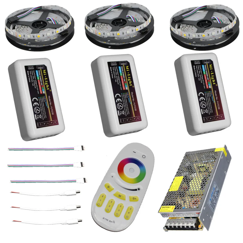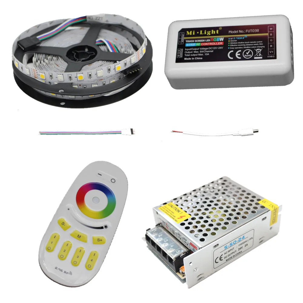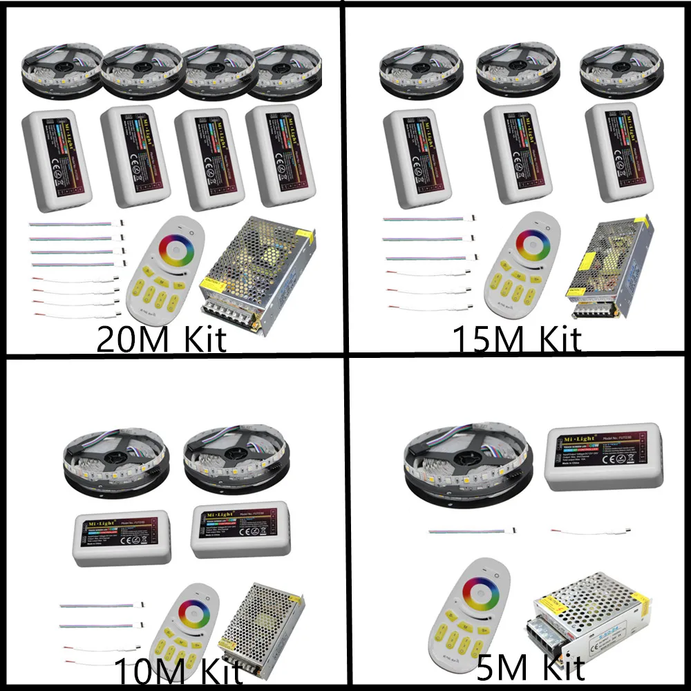 Светодиодная лента RGBW RGBWW, водонепроницаемая лента IP676520 5050, 15 м, 20 м, 10 м, 5 м, 12 В + Радиочастотный пульт дистанционного управления + комплект адаптеров питания