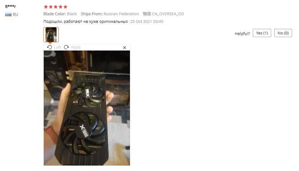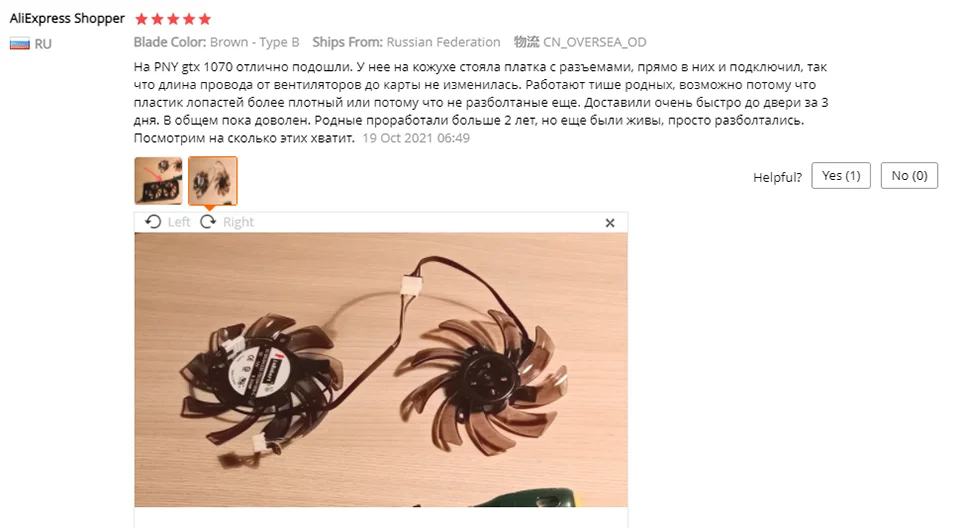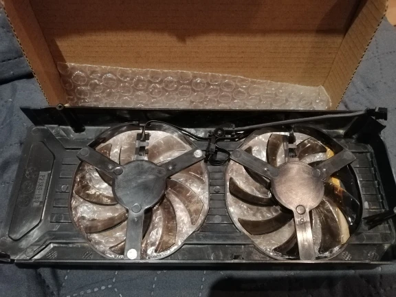 Очень быстрая доставка курьером. 4 дня всего. Курьер позвонил и принёс посылку по нужному адресу. Вентиляторы такие же,как стояли на моей видеокарте. Рекомендую! На фото один старый вентилятор и два новых.