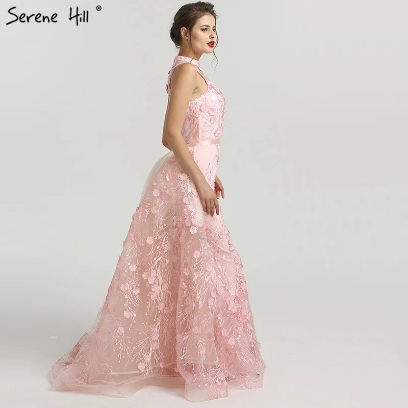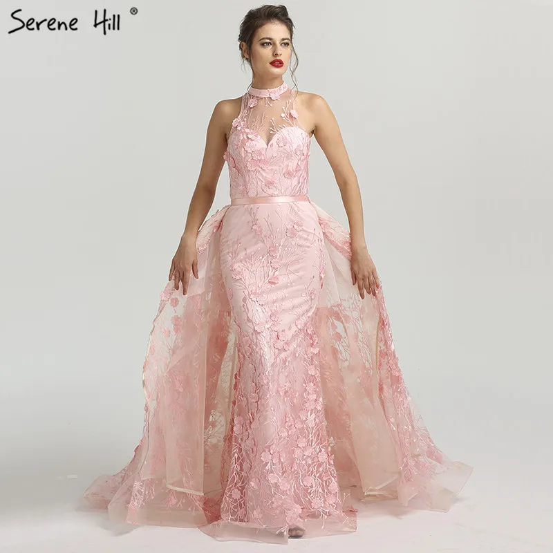 Мусульманское длинное розовое кружевное вечернее платье-Русалка с аппликацией, официальное платье для выпускного вечера, вечернее платье BLA6109
