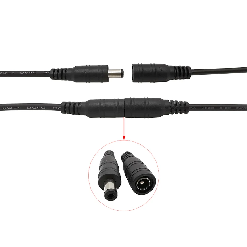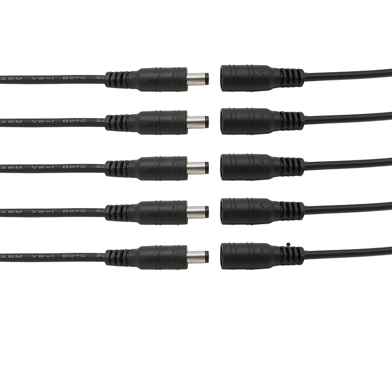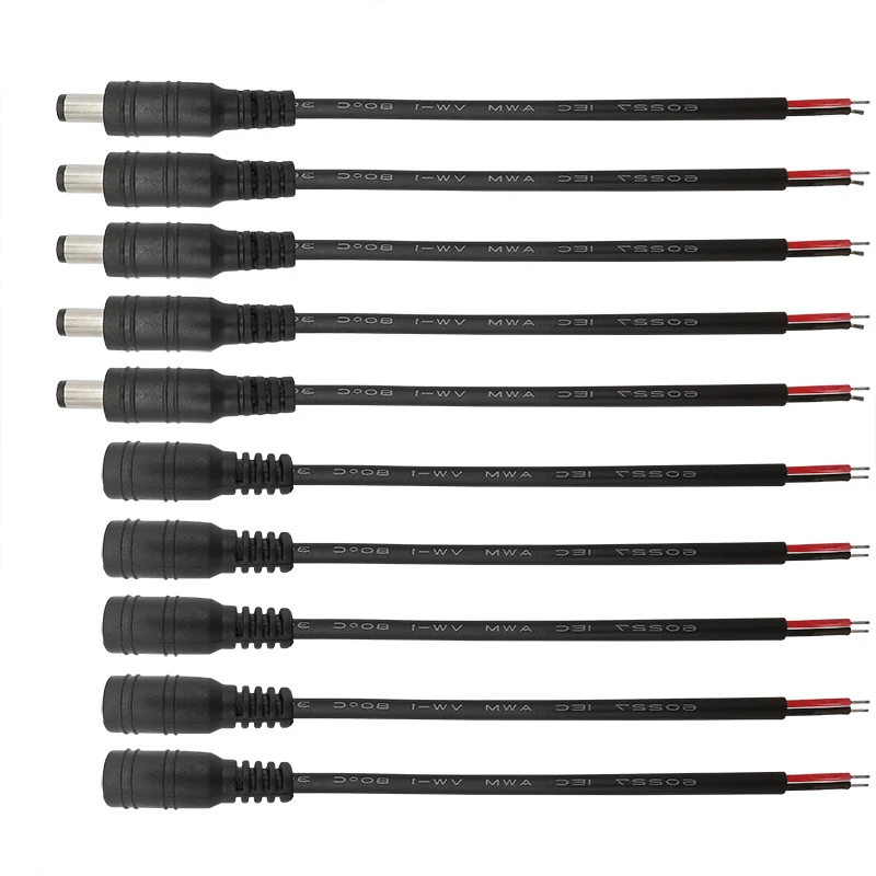 5 пар, 5,5x2,1 мм, штекер питания постоянного тока и гнездо, гнездо, косичка, Кабельный соединитель для камеры видеонаблюдения, светодиодная лента