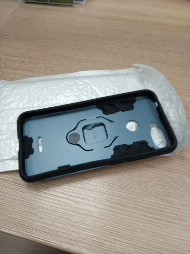 Посылка дошла за 25 дней до Башкирии. Чехол положили в пупырчатый пакет и заклеили. Ни кусочка изолона, чтобы не помялся, ни пакетика, вообщем "эконом" упаковка. Но дошёл не мятый. Чехол выглядит невзрачно, ну просто "дишман"! Цвет тускло-матово чёрный, не то что на картинке, очень маркий. Запаха нет. В руке лежит хорошо, мягкие вставки очень приятны. На Xiaomi Redmi Note 5 подошёл хорошо, все отверстия совпали. Кнопки выключения и громкости нажимаются очень туго и они почти не выпирают, на ощупь их довольно тяжело найти. Подставка выглядит "хлипенько" и поворачивается туговато. Вывод: внешний вид - ну очень "убогий", тактильно - приятен.