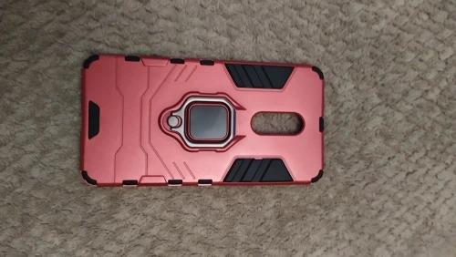 Чехол хороший, плотно телефон лежит в нем, бортики хорошо закрывают бока телефона, кольцо тугое, хорошо держит телефон, как подставка, телефон в чехле не кажется толстым, разъемы все совпадают. Цвет на фото немного ярче. На самом деле цвет темноватый красный металлик. Материал-жесткий пластик, металл в чехле только кольцо, магнита нет. Спасибо продавцу. Товар шел 3 недели.
