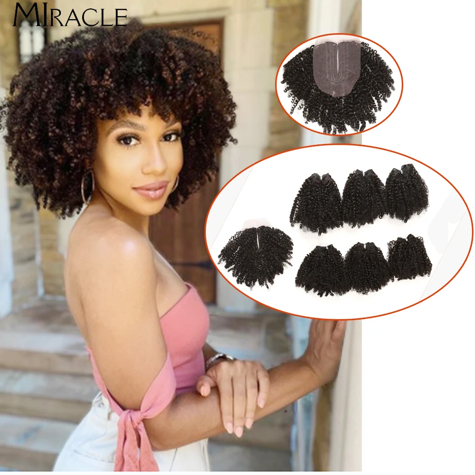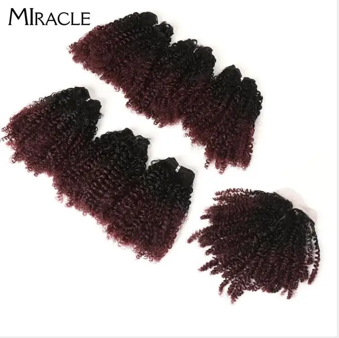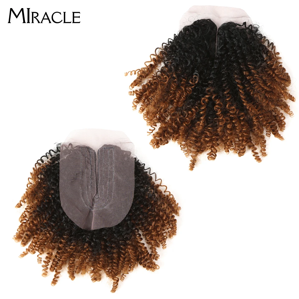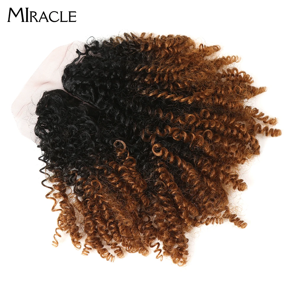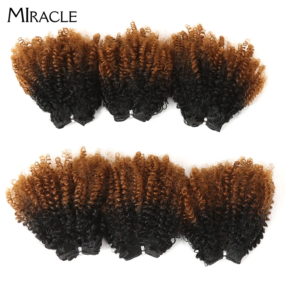 Волшебные синтетические волнистые пряди с эффектом омбре 14 дюймов, Короткие вьющиеся кудрявые пряди с застежкой для афроамериканских женщин 200 г 7 шт.лот