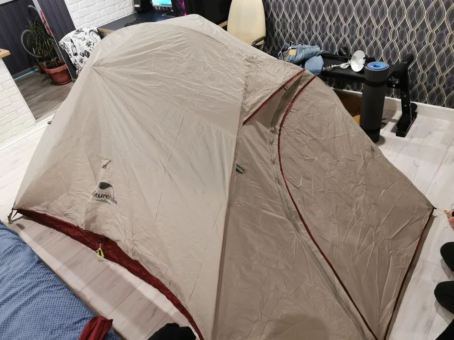 Доставка быстро, качество за свою цену вполне оправдывает, в 3х местной - свободно ложатся 3 взрослых весом не более 85 кг. Даже в одну сторону, ширина дна 180см. Само качество тента ну на 3йку, у брендовых лучше но там и цена. Так что можно свободно брать не пожалеете. Вес в полном комплекте на фото, без футпринта. И цвет не белый)