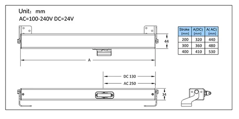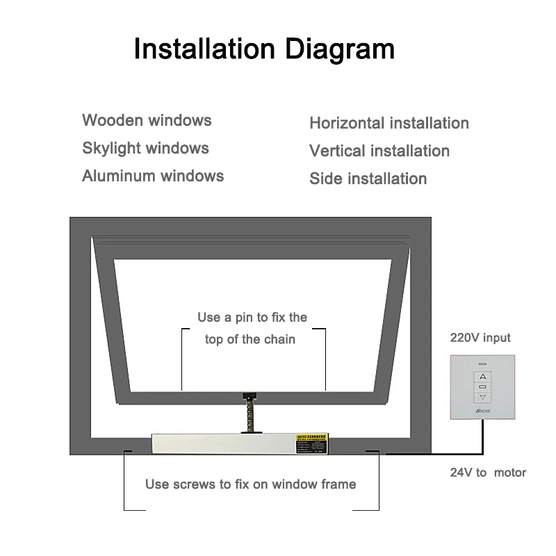 Мини-Открыватель окна с одной цепью, 24 в пост. Тока, до 300 мм, 11 дюймов