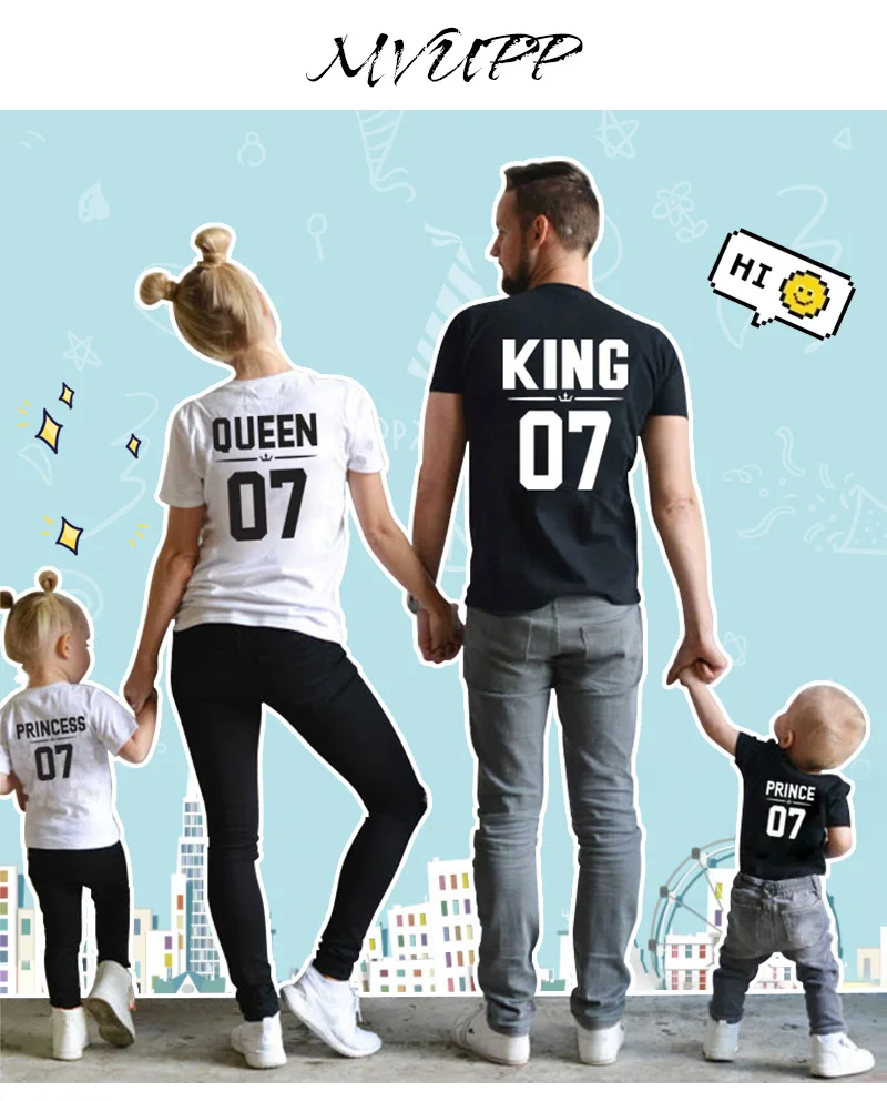 Одинаковые комплекты для папы, мамы и ребенка одежда Мама и я Платья для мамы и дочки модная футболка для принцессы с принтом король и королева