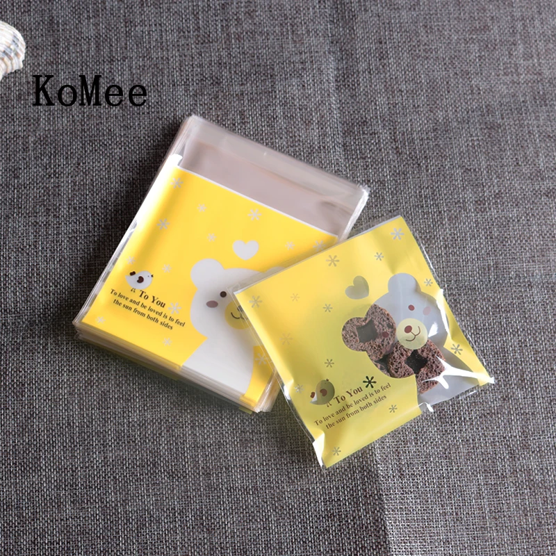 100 шт. 10x10 + 3 см милые пакеты для печенья и конфет с рисунком, свадебный подарочный пакет для вечеринки, самоклеящиеся пластиковые желе