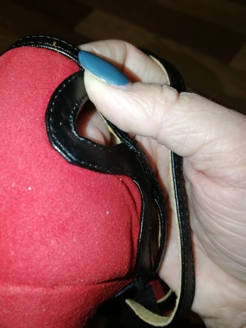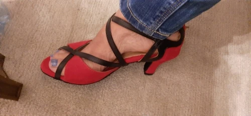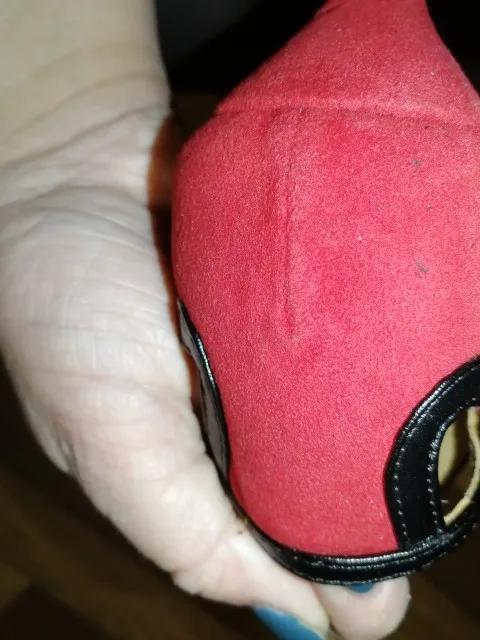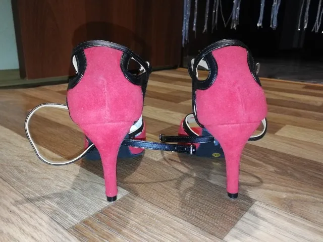 Красные туфли отличаются по качеству от чёрных значительно. Чёрные материал мягкий, бархатистый, приятный, красные значительно грубее материал, жёсткий, но больше напоминает замшу. Немного широковаты. Но продавец вложил уплотнитель для стопы, приятно