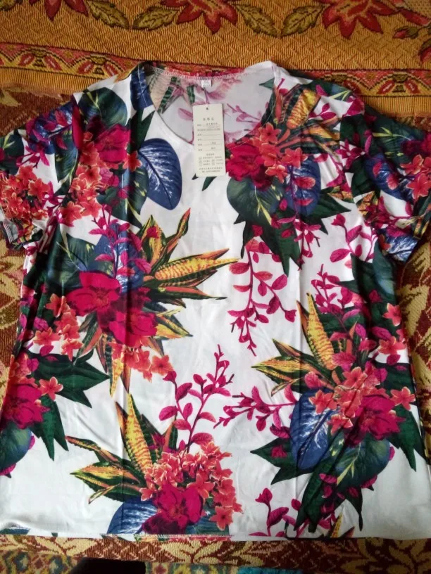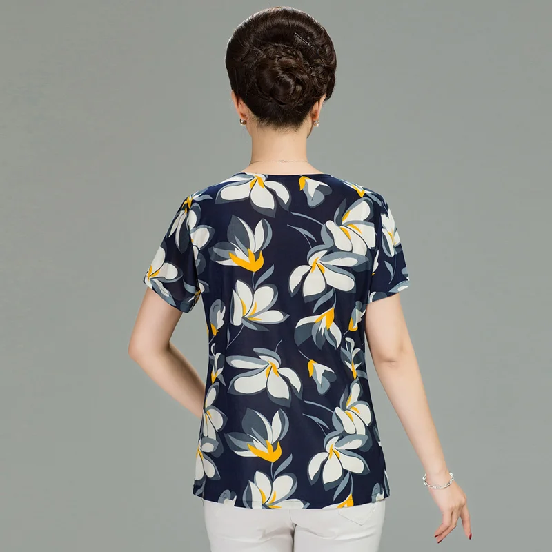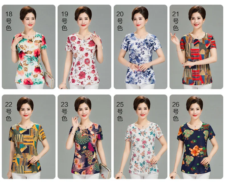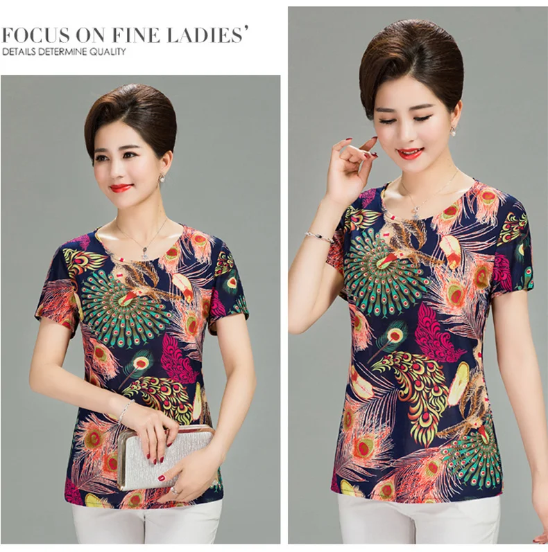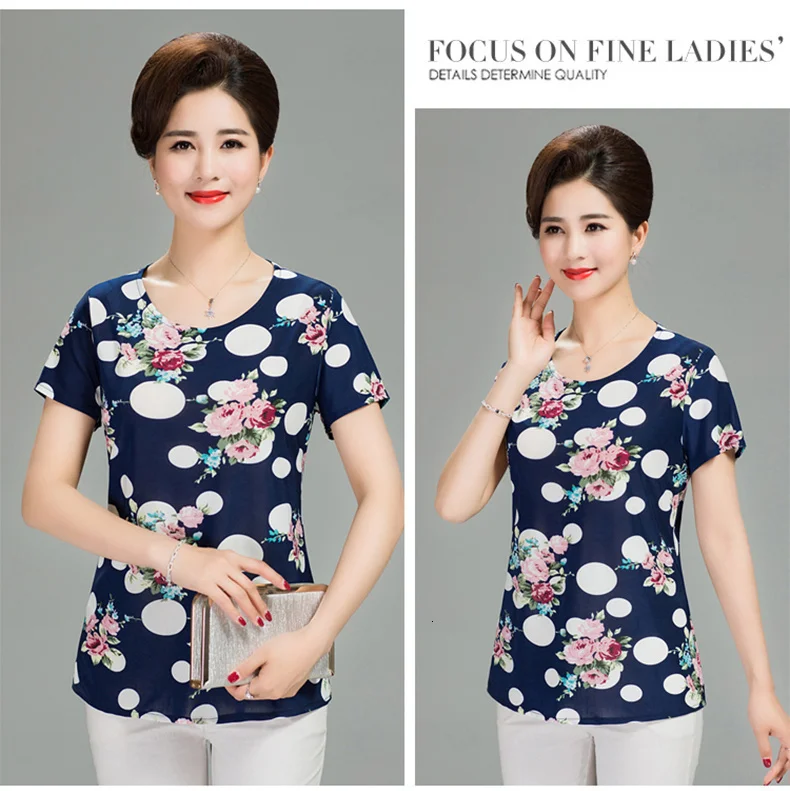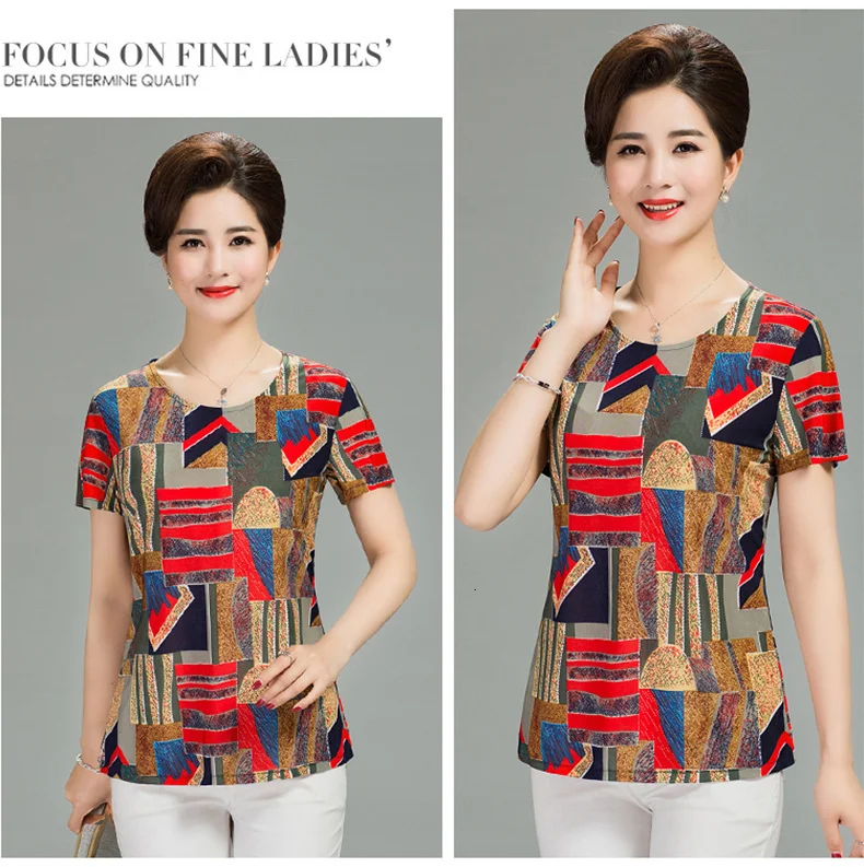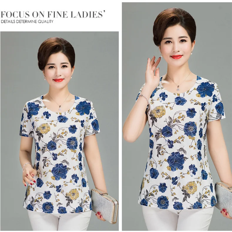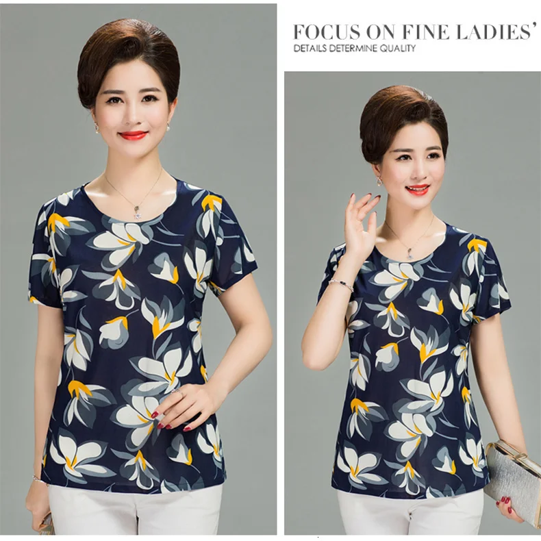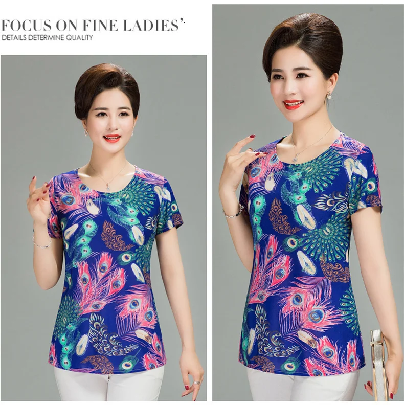 Женская футболка, большие размеры 4XL, футболка из молочного шелка с принтом и коротким рукавом, модная одежда для мам среднего возраста, 2020