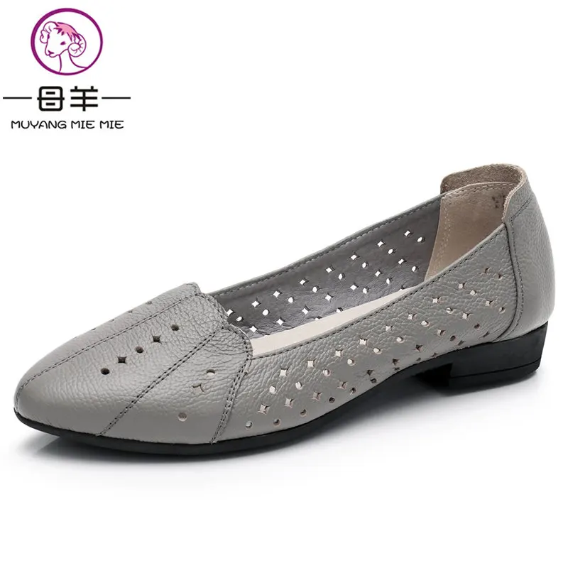 Женские сандалии из натуральной кожи MUYANG MIE, летние дышащие сандалии на плоской подошве, большие размеры 35 - 43