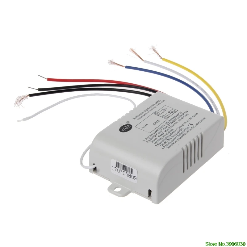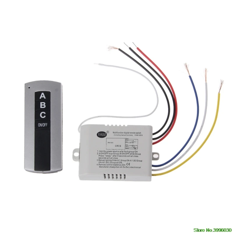 100% новый и высокое качество Идеально подходит для дистанционного управления подвесной светильник, хрустальная лампа, современная лампа низкого давления, поглощающий купольный светильник, дневная Цветочная лампа, люминесцентная лампа, энергосберегающие лампы, вытяжной вентилятор, светодиодный светильник и т. Д. Быстрая и простая установка, не мешает стенам, способная соединять любые нагрузки. Пульт дистанционного управления и переключатель можно использовать одновременно для удобства и гибкости. Каждый набор переключателей дистанционного управления имеет свой специальный код. Больше комплектов можно использовать в одной комнате без помехТрехходовой пульт дистанционного управления: Функция: 1. A/1 будет светильник после включения. 2. A/1 используется для включения/выключения синей группы, B/2 используется для включения/выключения белой группы, C/2 используется для включения/выключения желтой группы, «ВКЛ.»/«Выкл.» означает включение/выключение всего товара. 3. Ручное освещение (управление настенным переключателем): A/1 , B/2 , C/3, вся цепь будет включена.