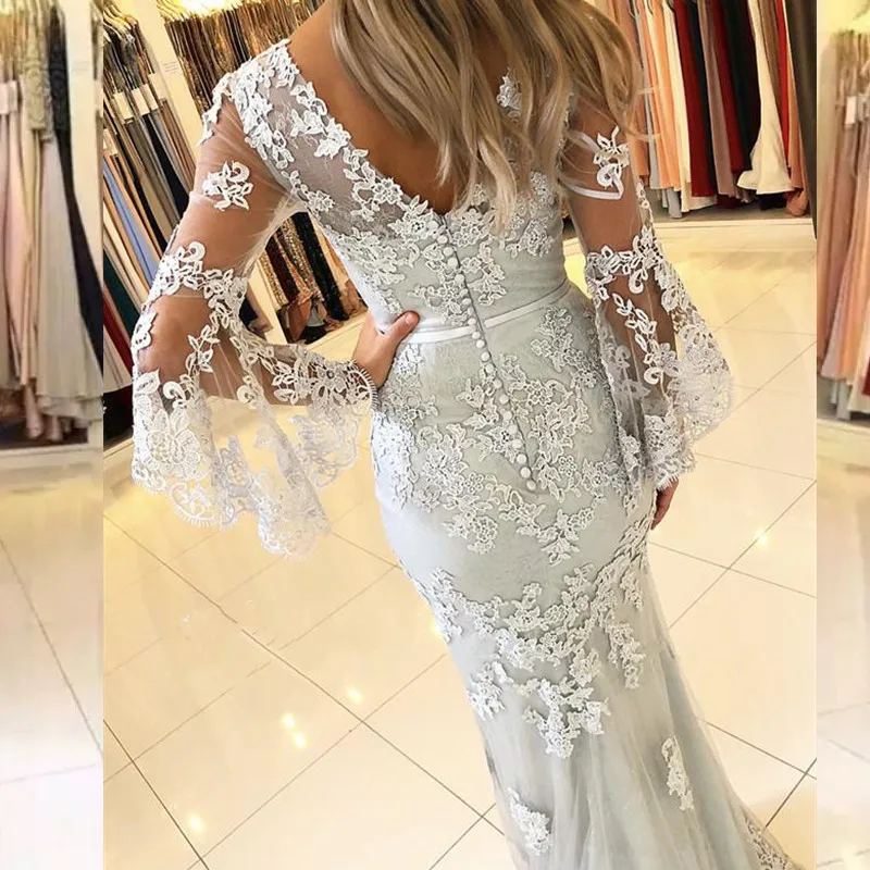 Женское вечернее платье с юбкой годе, Расклешенным рукавом и открытой спиной