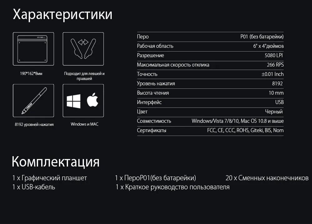 все просто супер!! в москву доставка меньше четырех дней. в комплекте нет переходника для телефона. полностью соответствует описанию. коробка не была помята при получении, которое заняло меньше пяти минут. подставки для стилуса нет, батарейки не нужны. рисует хорошо даже без драйверов все просто отлично, довольна :3