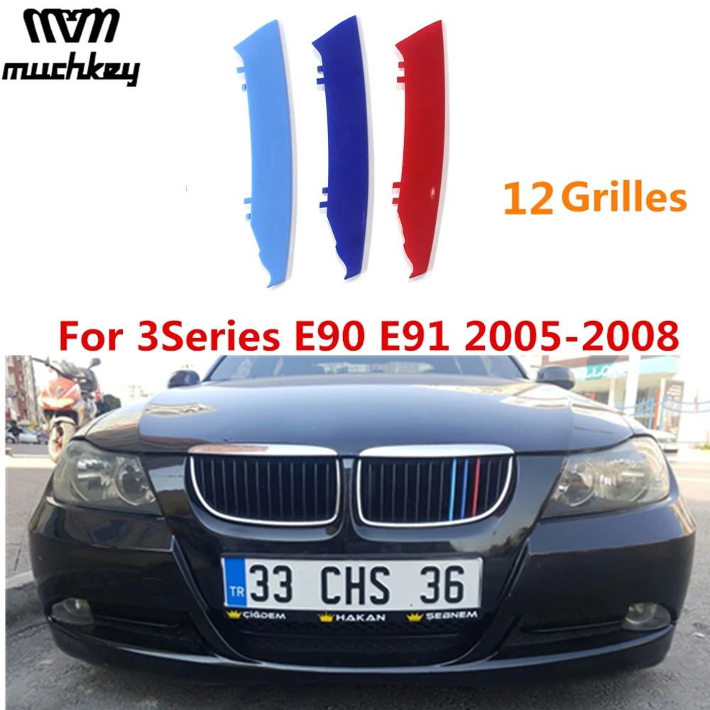 3D M Стайлинг Автомобильная передняя решетка, отделочные полосы, наклейка на гриль для BMW 3 серии 2005 до 2008 E90 E91 320 325 330 335 12 решетки