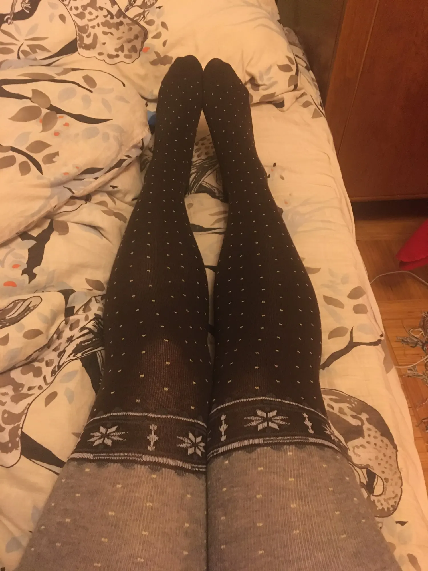 Колготки с низким подъемом и тонким бедром. Я на рост 170 и европейский размер 46/48 и слишком мал для меня. Перед покупкой необходимо получить более подробную информацию о размере. Узор в полоску со звездами очень узкий и изящный, внутренняя резьба может лопнуть так сильно, что нельзя положить. Рисунок звезд только немного выше колена, а не бедер. Приятный на ощупь, приятный цвет, но не для меня. Упаковка пришла довольно быстро.