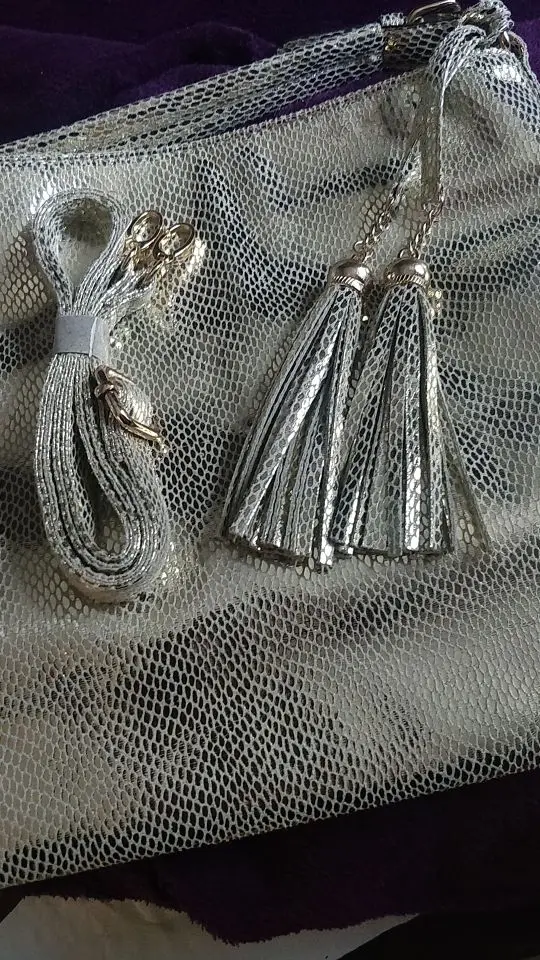очень красивая сумка. заказывала серебряную. много кармашков, хорошо сшитая. в комплекте длинный ремешок