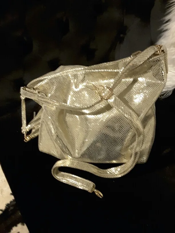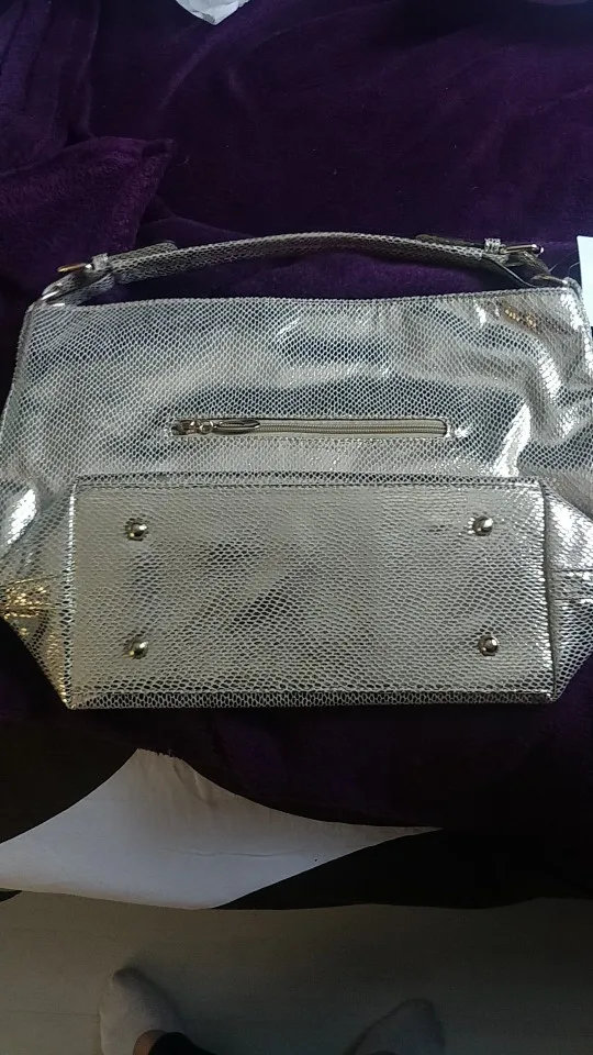 Сумка красивая, пришла очень быстро. Доставка курьером. Вот одно но! Ошиблась с цветом, заказала золотую. Написала сообщение продавцу чтобы положили серебряную. В результате привезли золотую. Ну не пожалела, ну вот только теперь надо ещё серебряную покупать. Продавцу ставлю все звезды за маховую доставку!