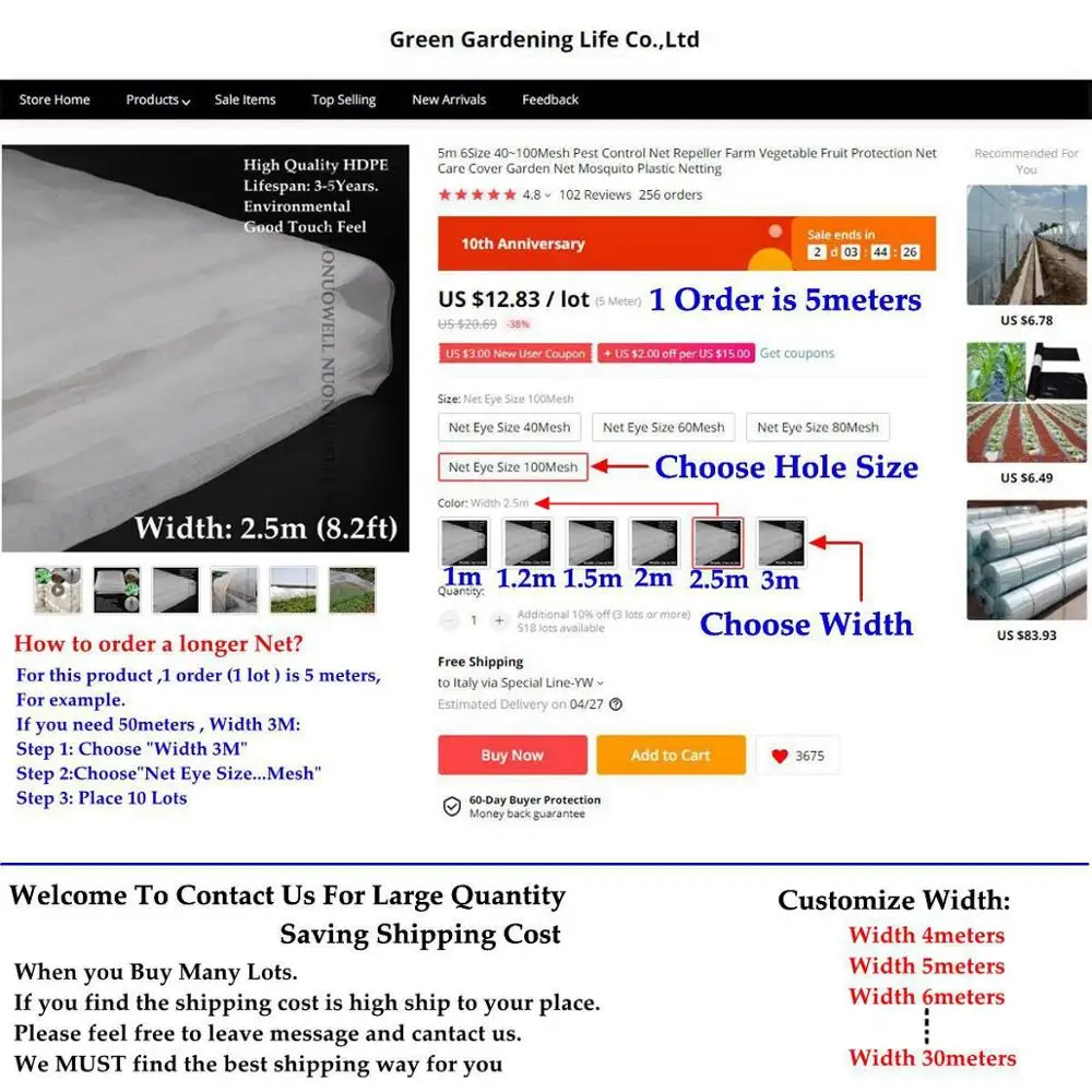 Страна: IL Color: Width 3m Size: Net Eye Size 100Mesh Доставка: Standard Shipping 08.02.2021