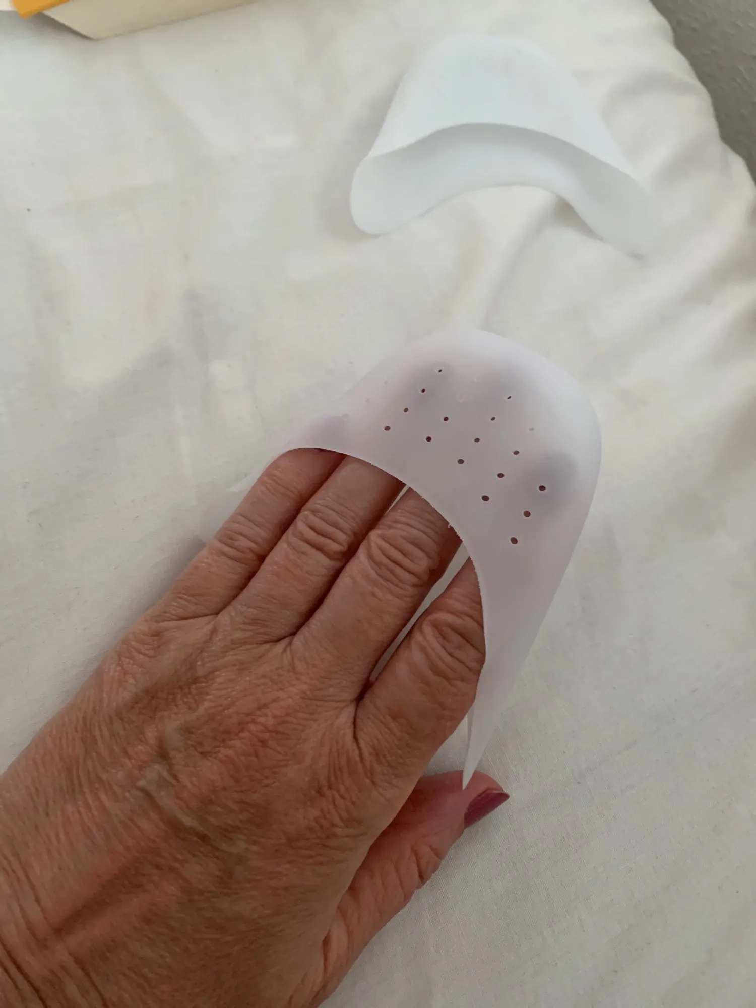 I ordered silicone gel toe breathable ballet, arrived in very good shape. reasonable quality but a bit larger than i expected ( i am size 36 europe) and it is not 'invisible' when wearing small shoes. but again, arrived fast and was wraped in a good way.