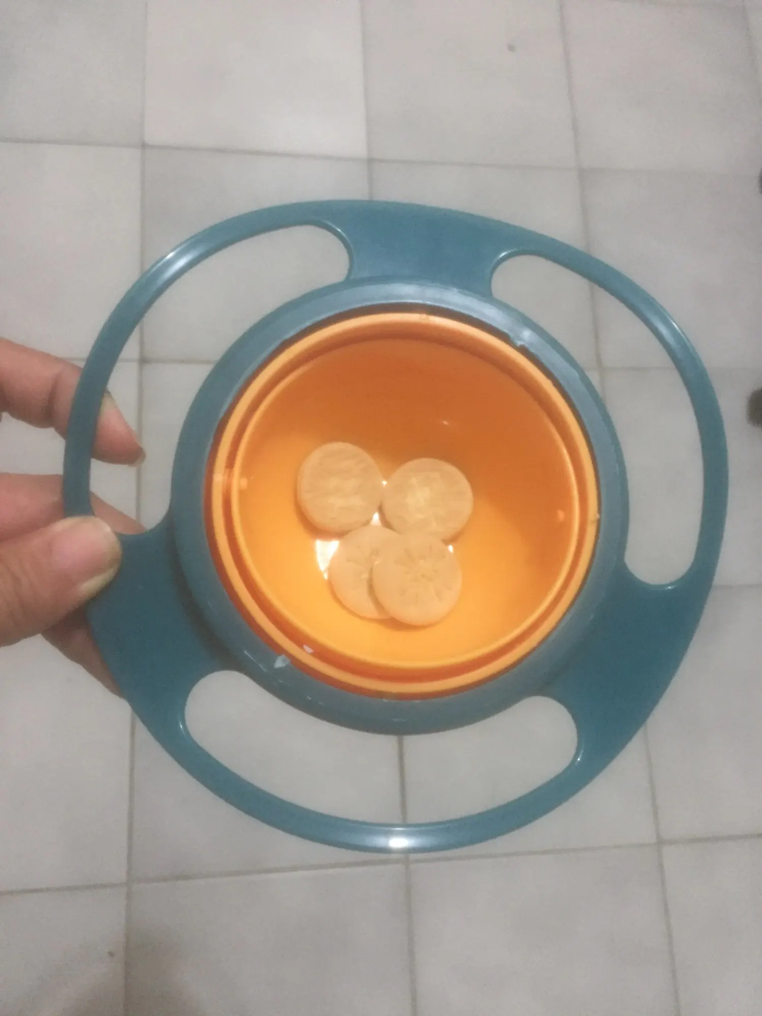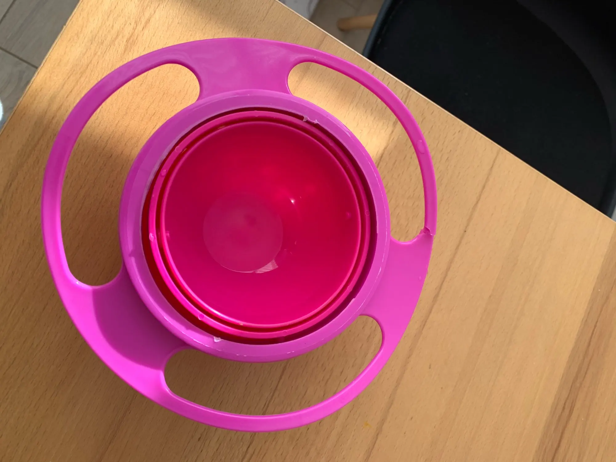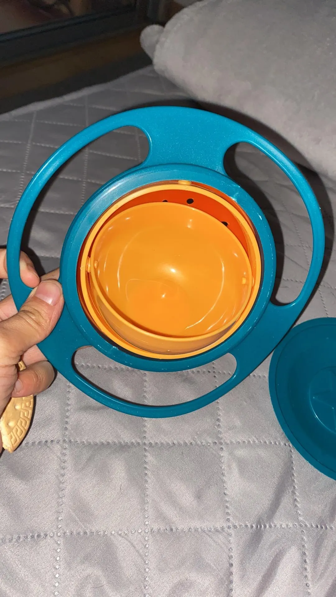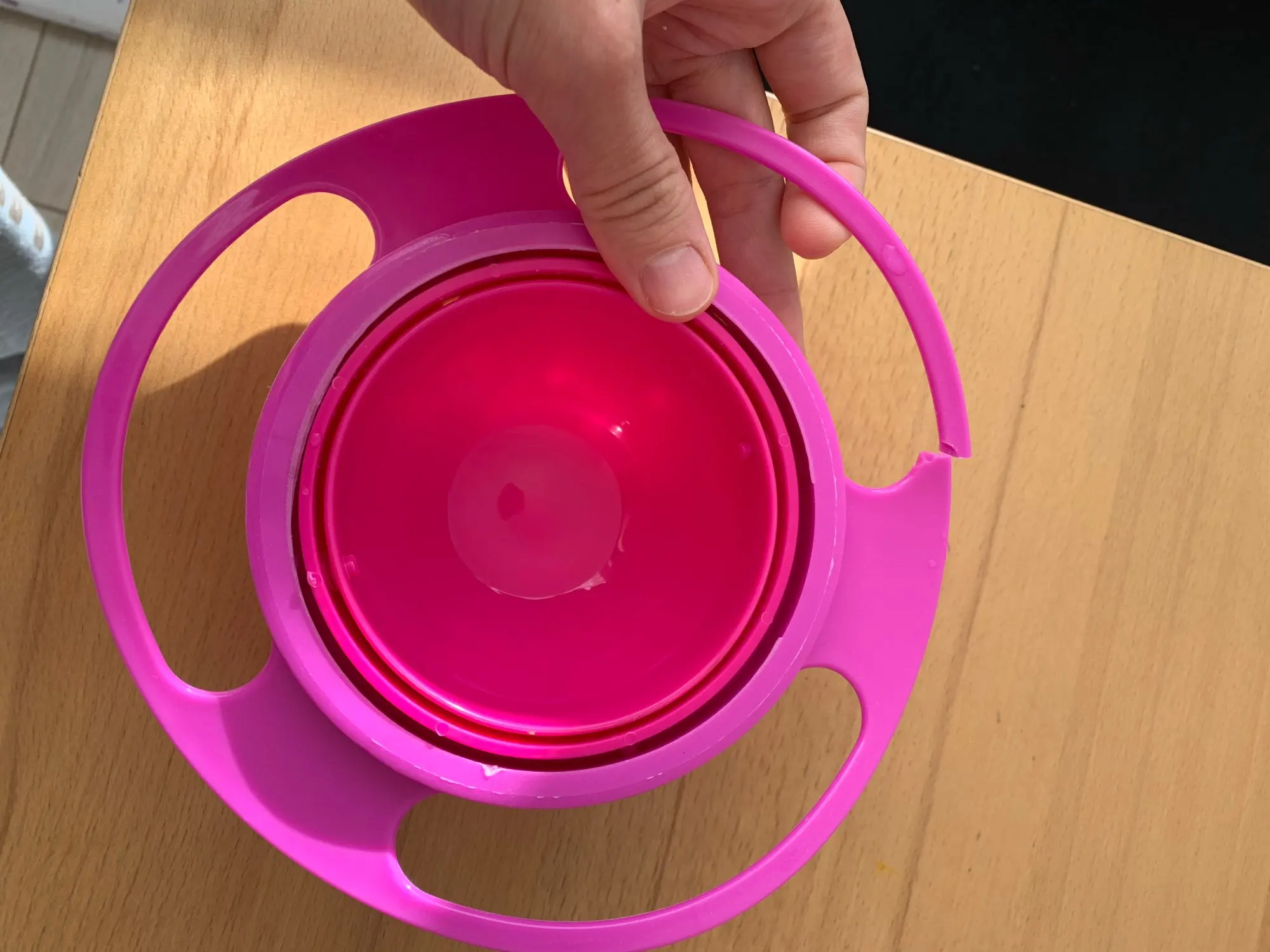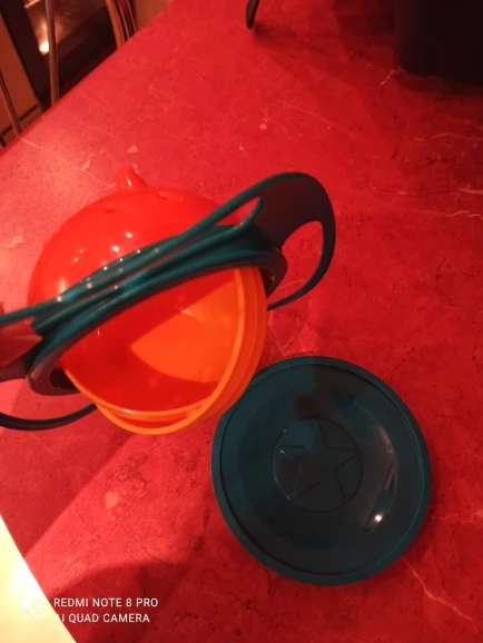 Тарелка на вид такая же как и по фото, единственное что сама эта "сфера" выпадает когда ребёнок её трогает. Крышка плохо зыкрывается и сама по себе чаша маленькая. До года конечно этот вариант супер, после года когда ребёнок уже понимает что можно саму чашу держать или выдернуть, совсем не то. Принцип этой тарелки теряет смысл, все рассыпается само собой.