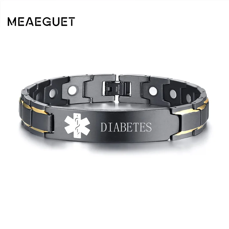 Медицинский ID браслет для мужчин магнитный браслет из нержавеющей ...