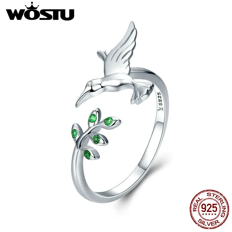 Женское кольцо с колибри и листвами WOSTU, из серебра 925 пробы в естественном стиле, подарок CQR323