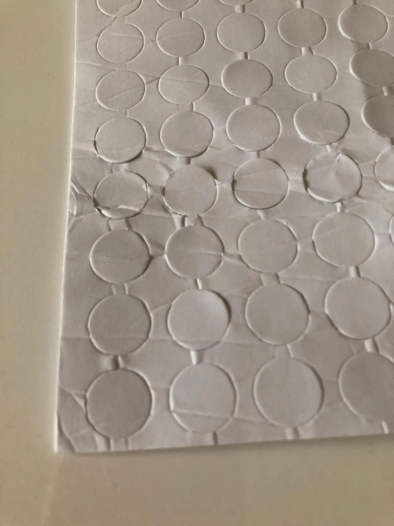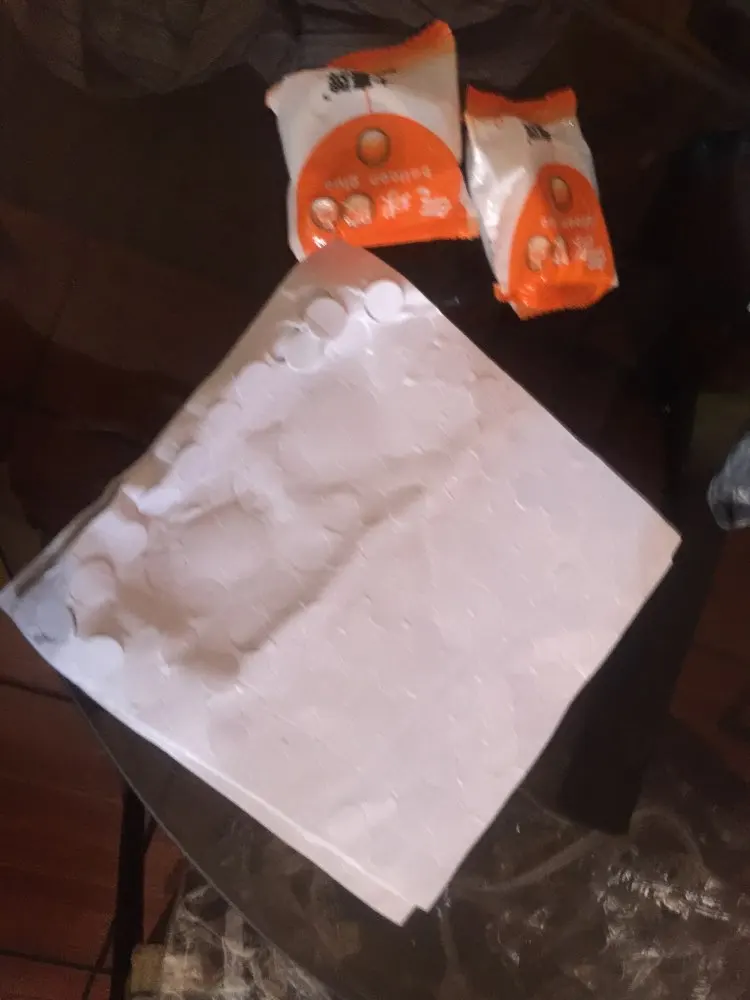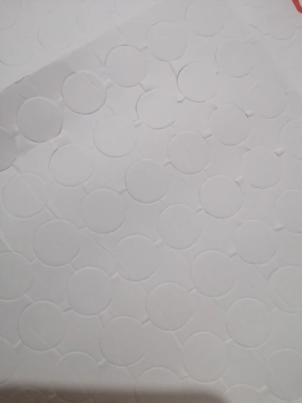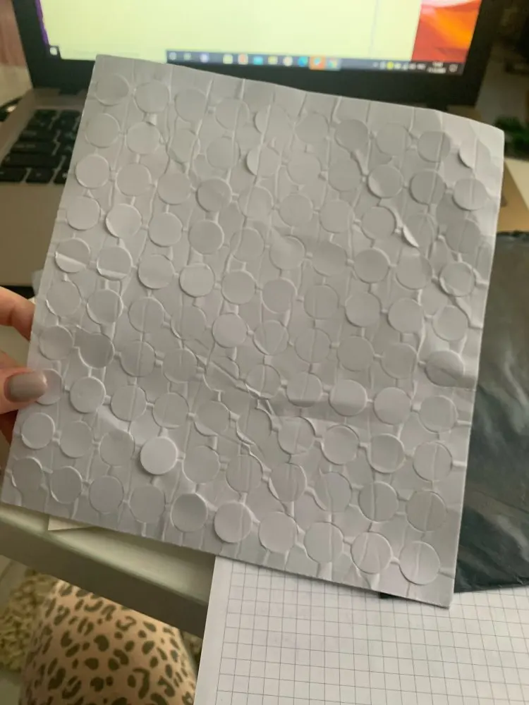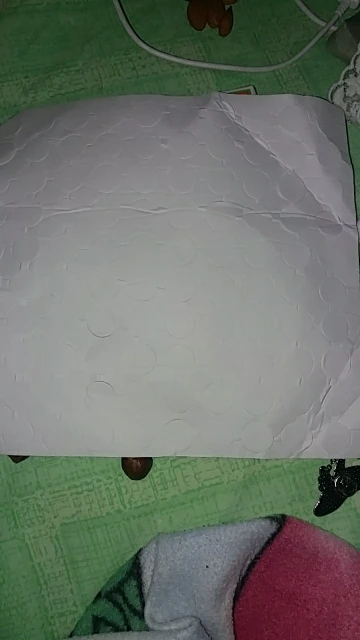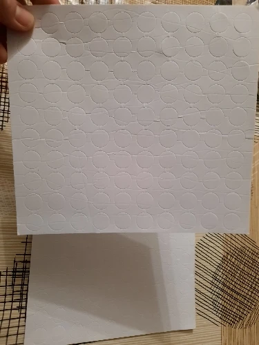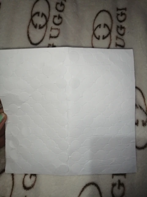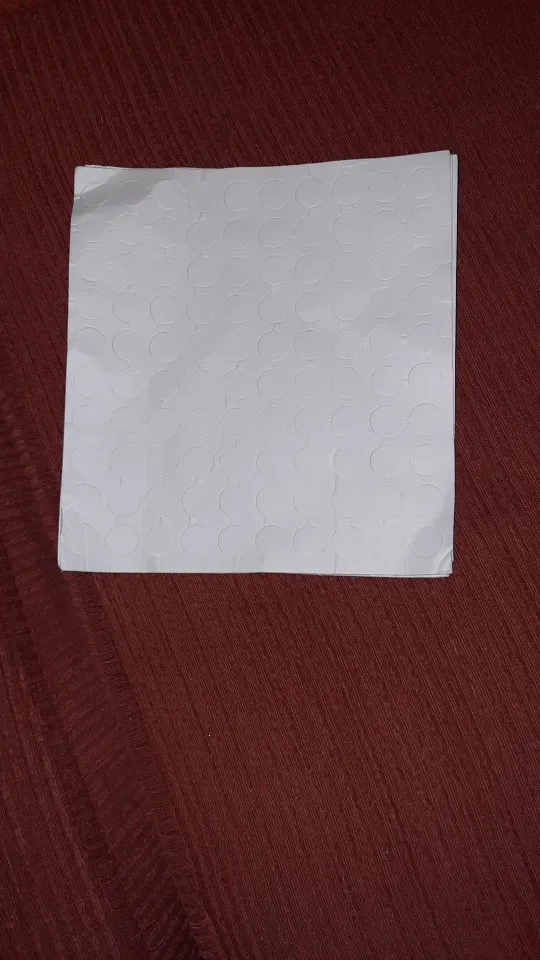 Пластинка с клейкими кружками приехала за две недели. чуть помята,но это не страшно. в деле пока не испытывали. их 100 штук, как и заявлено. достаточно большие и мягкие .