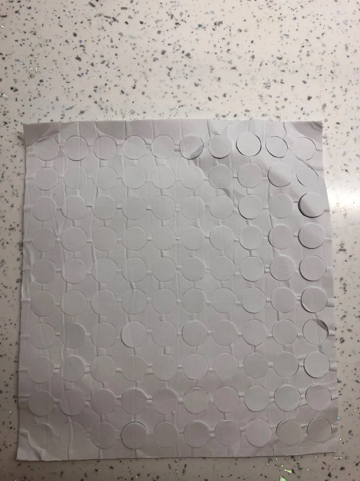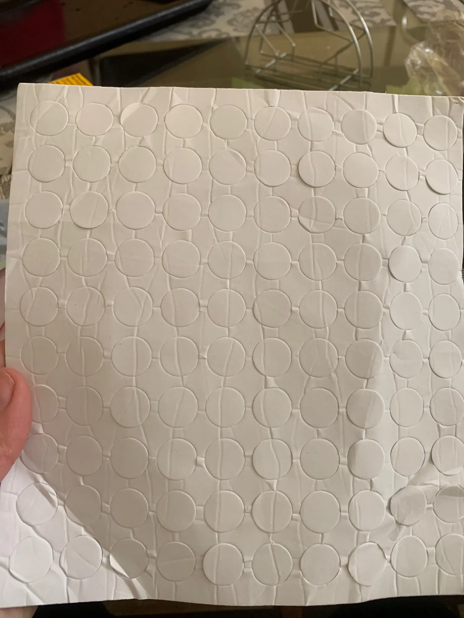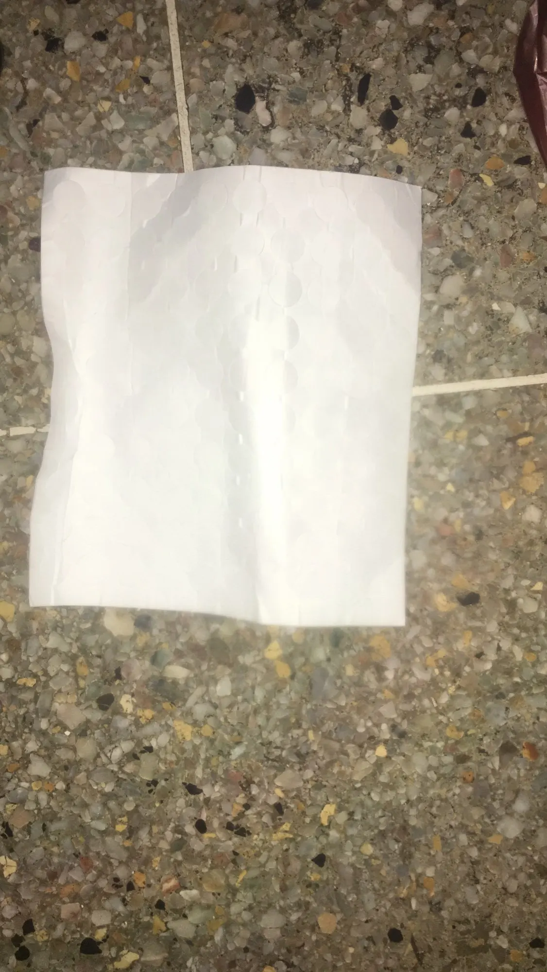 Пластинка с клейкими кружками приехала за две недели. чуть помята,но это не страшно. в деле пока не испытывали. их 100 штук, как и заявлено. достаточно большие и мягкие .