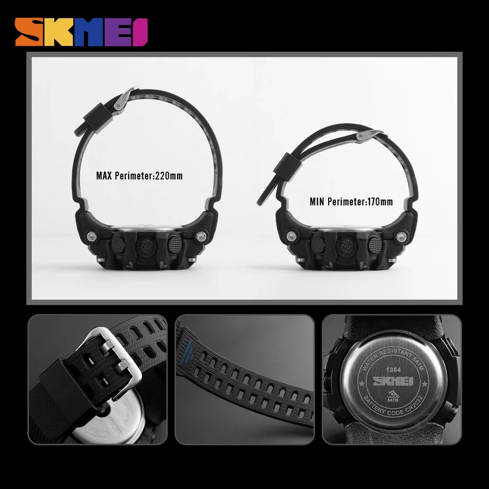 Часы наручные SKMEI мужские с будильником, модные спортивные цифровые водонепроницаемые, с обратным отсчетом, с 2 часовыми поясами