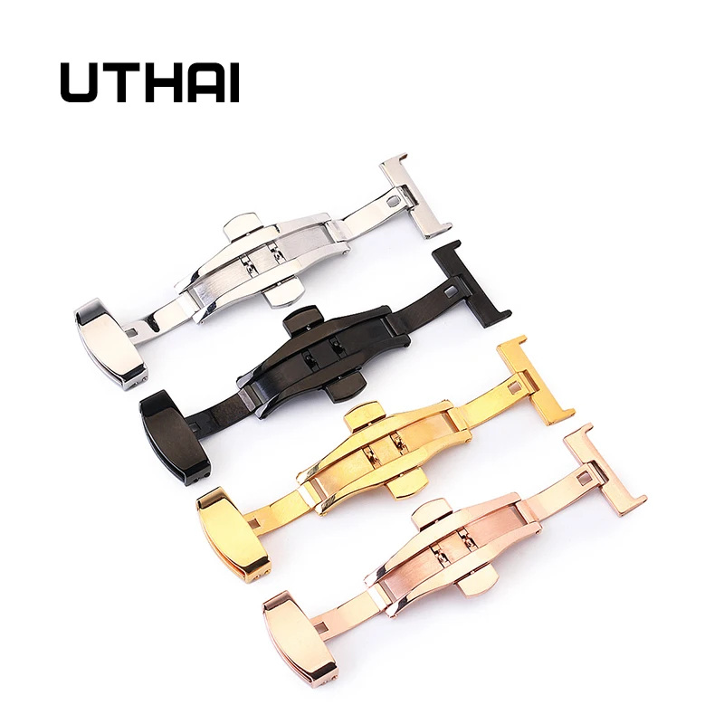 Автоматические часы UTHAI T02 с двойным кликом и пряжкой-бабочкой, нажимная кнопка, складная застежка, серебряный ремешок для часов