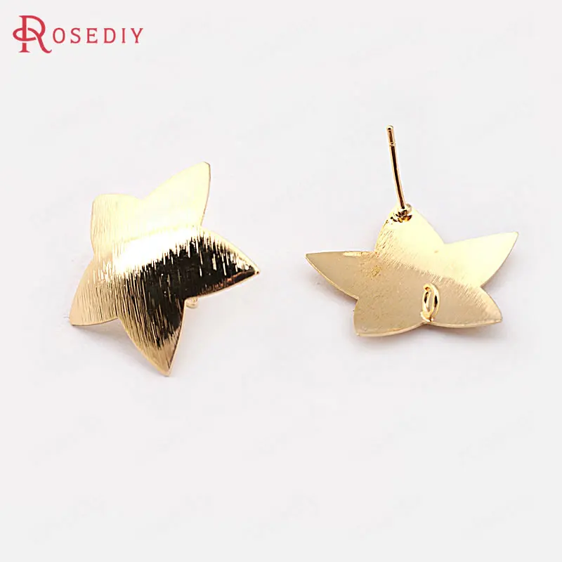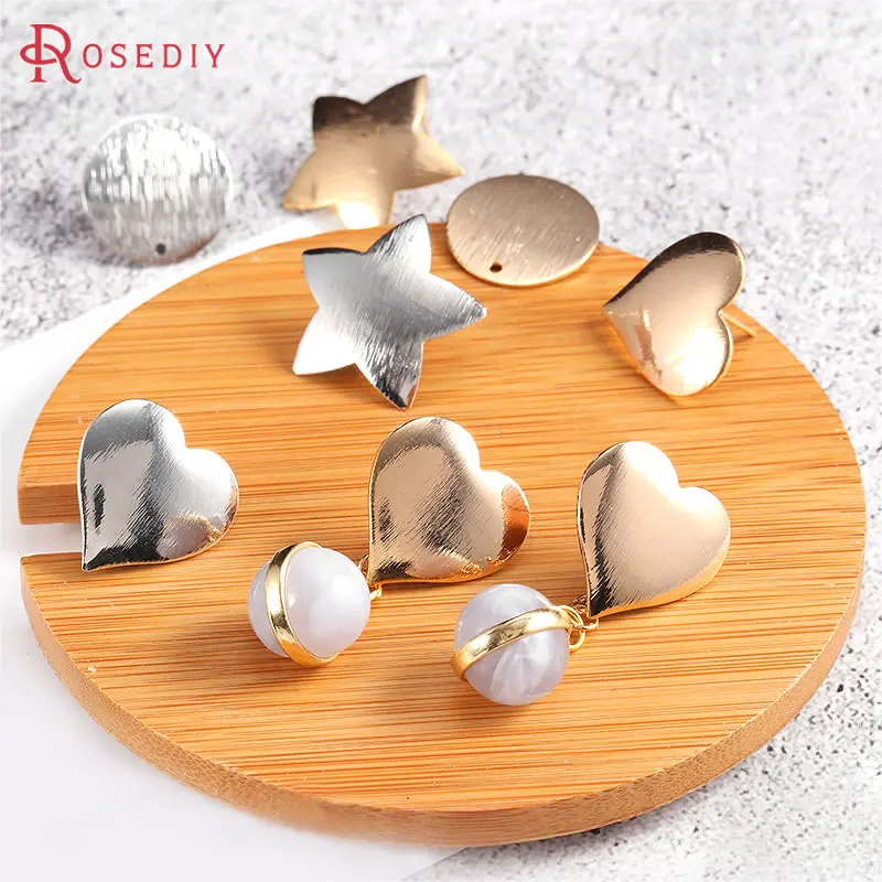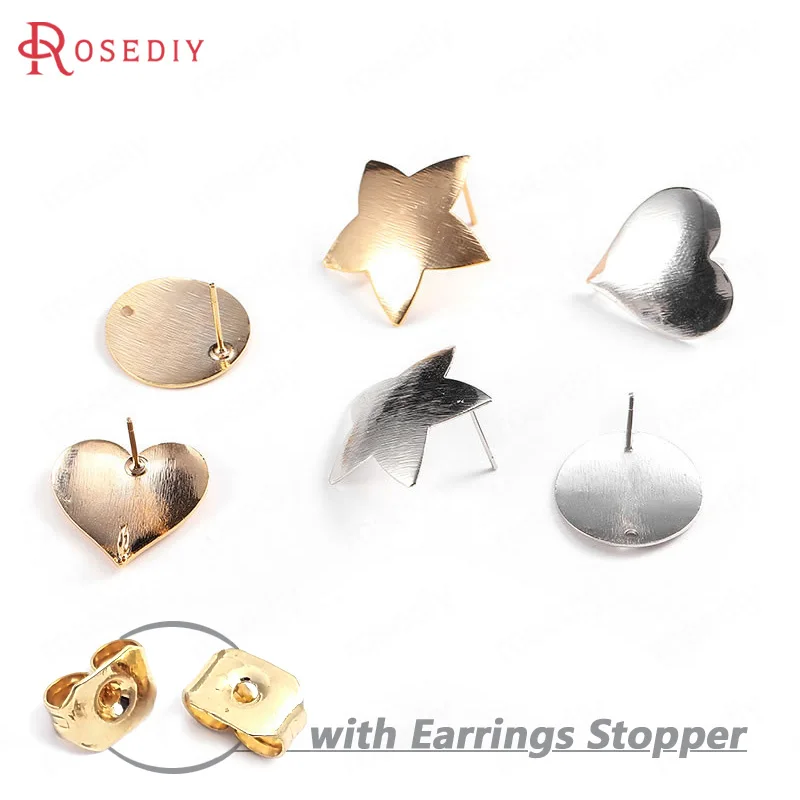 Круглые серьги-гвоздики из латуни 24 к с узором в форме звезды и сердца, комплектующие для украшений сделай сам, 10 шт.