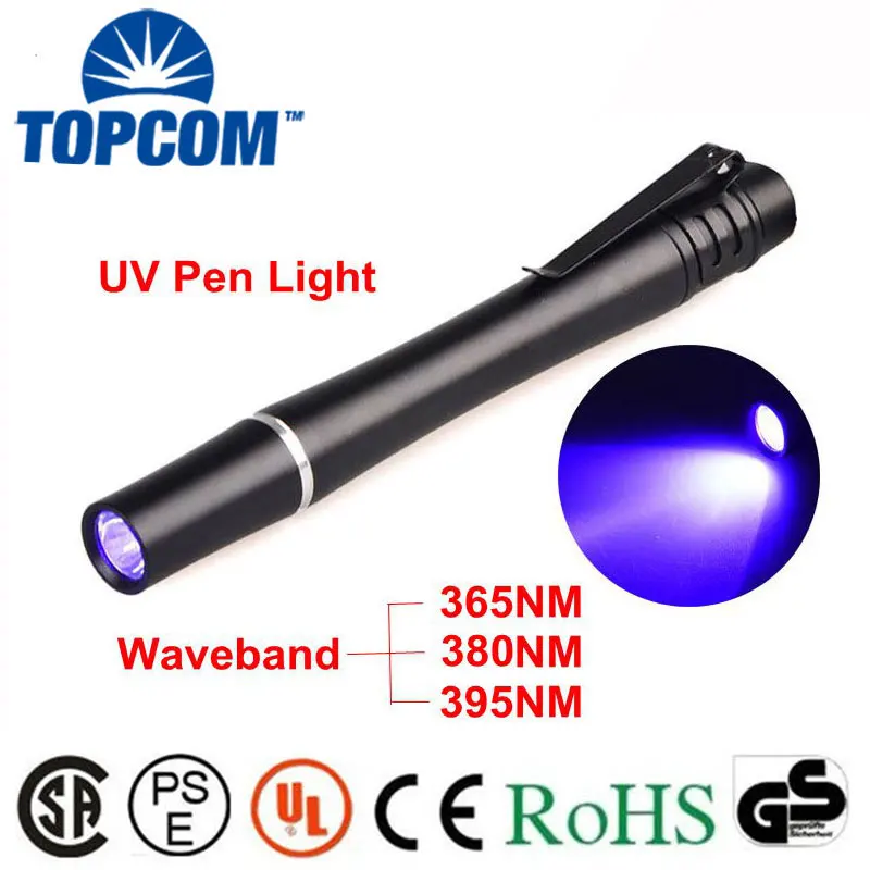 TopCom ручка фонарик 395nM 380nM 365nM УФ освещения мини детектор валют Алюминий деньги осмотр UV LED ультрафиолетовый фонарик