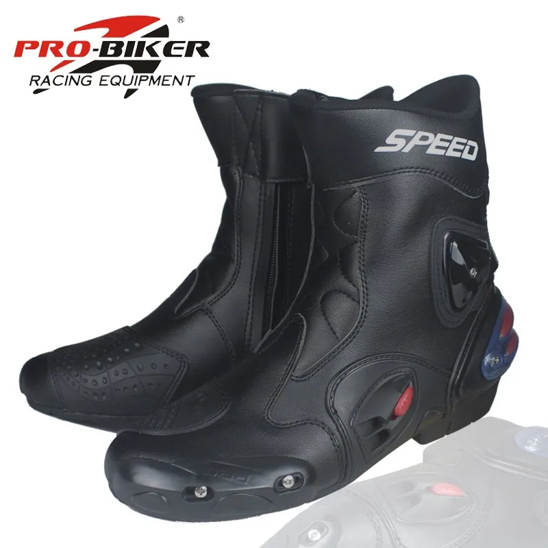 Мотоциклетные ботинки PRO-BIKER, Кожаные Мотоциклетные гоночные ботинки, черные, красные, белые, трех цветов, защитное оборудование A004
