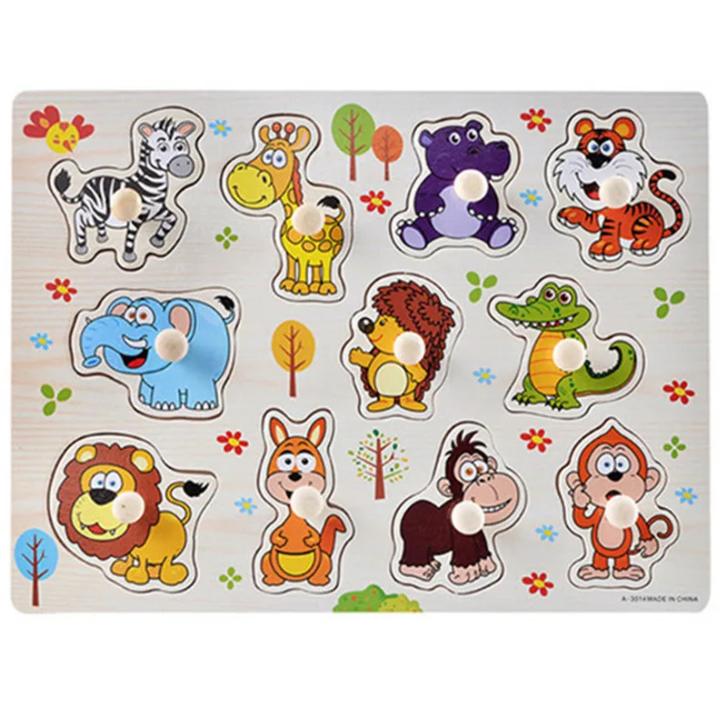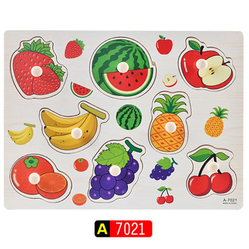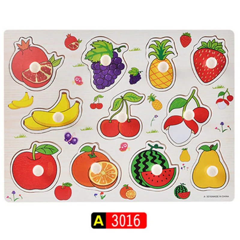 Деревянные игрушки, 3D пазл, фрукты и овощи, Мультяшные животные, Игрушки для раннего обучения, подарки для детей