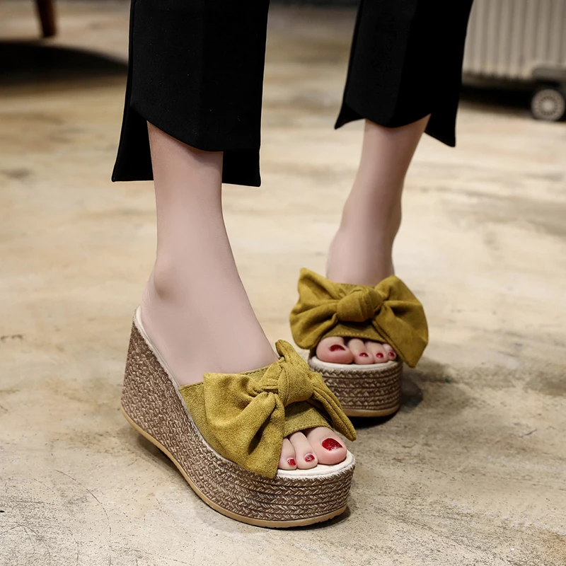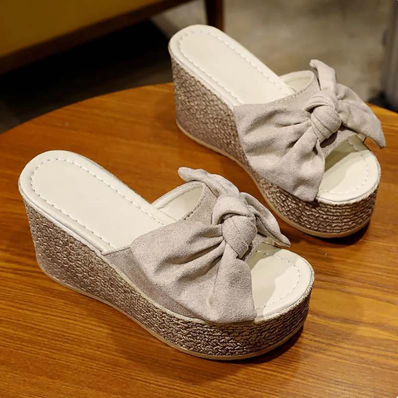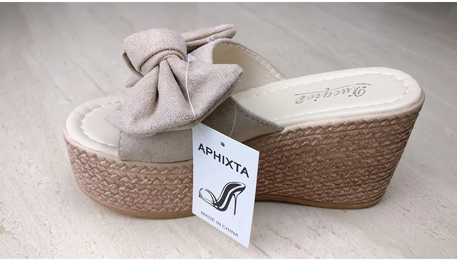 Шлепанцы Aphixta женские на танкетке, пляжные Нескользящие тапочки, на платформе, с аппликацией и бантом, сланцы, летняя обувь