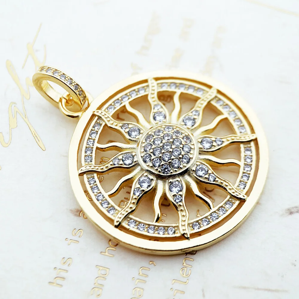 Кулон-амулет солнце золотого цвета, 2017, ювелирные изделия из серебра 925 пробы, Европейское ожерелье, аксессуары, подарок для мужчин и женщин