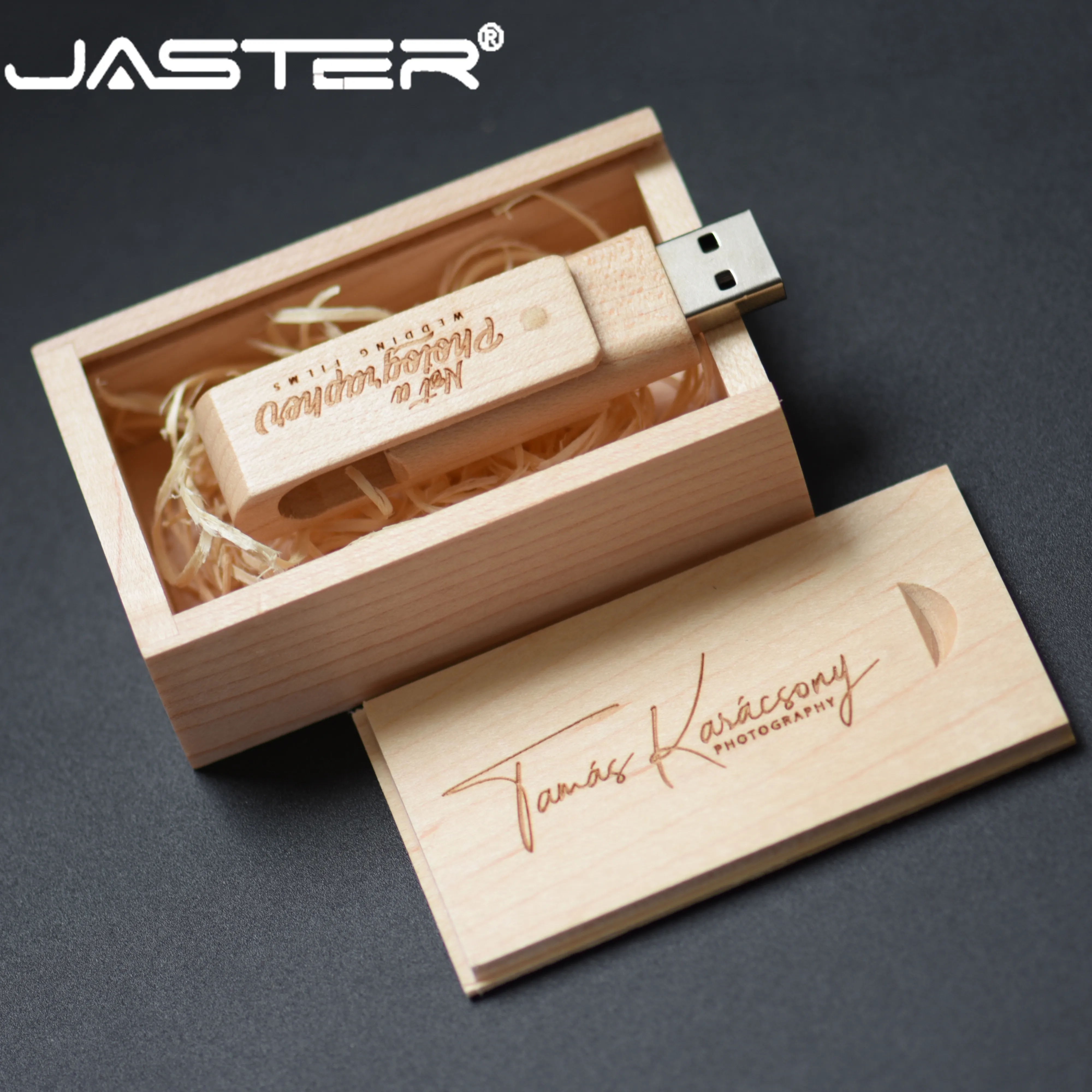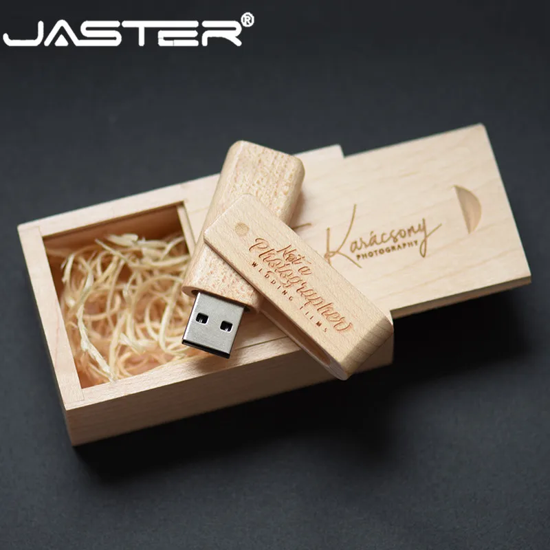 Вращающийся деревянный накопитель JASTER в коробке, флеш-диск USB 2...