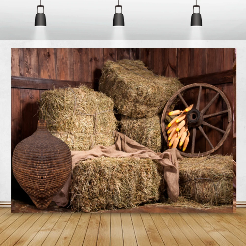 Фон для фотосъемки с изображением фермы вечеривечерние стога сена гранитного склада кукурузы деревянного Колеса детский Фотофон для фотостудии