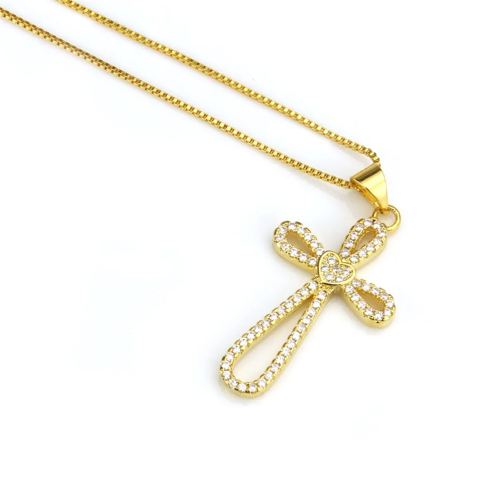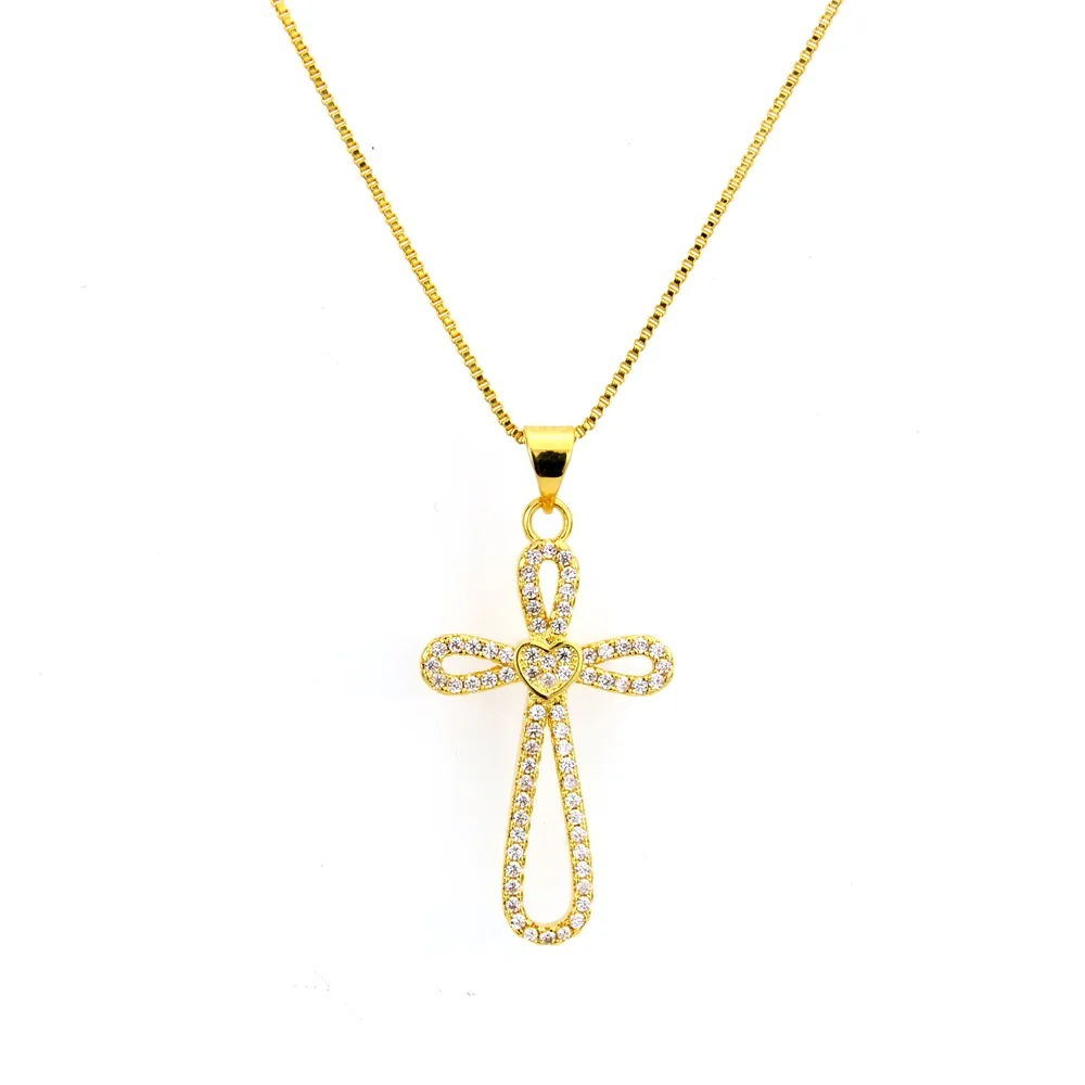 SUNSLL золотой цвет медный Белый Цвет кубический цирконий крест кулон ожерелья женские модные ювелирные изделия CZ Colar Feminina