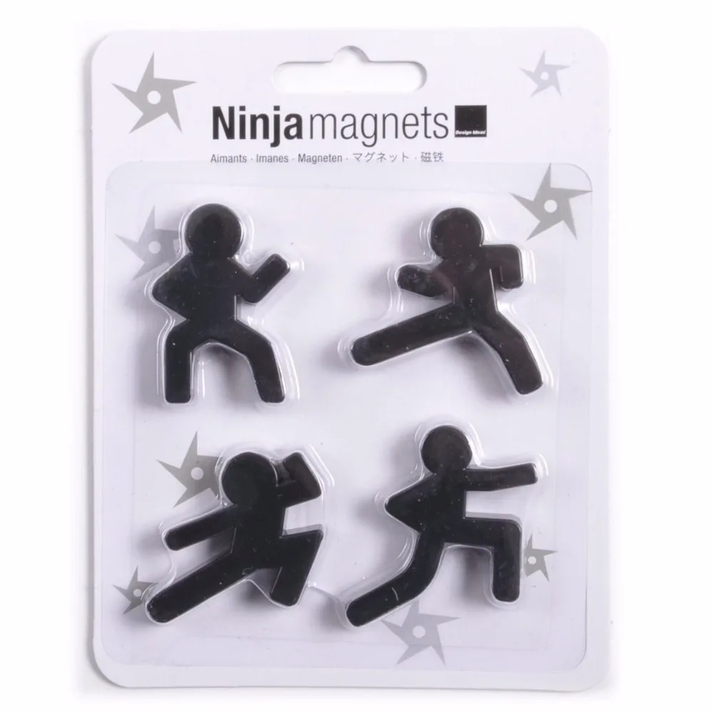 Магнитные зажимы для сообщений черного человека в стиле кунг-фу для детей, 4 шт., магнитная наклейка на холодильник