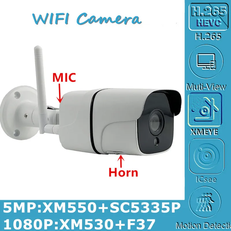 Wi-Fi беспроводной 5 Мп 3 Мп 2 МП Встроенный микрофон динамик Двусторонняя аудиосвязь XM550 + SC5335P IP уличный Металлическая Цилиндрическая камера видеонаблюдения irc-xmeye VMS P2P RTSP