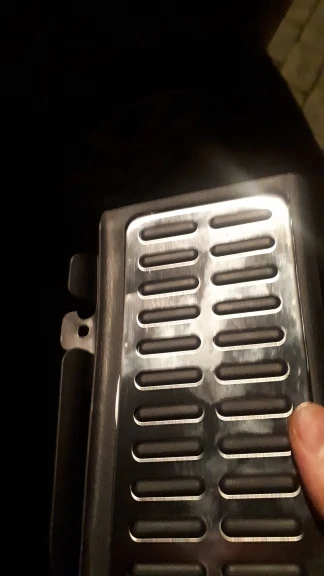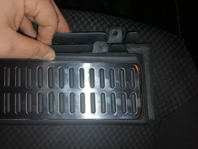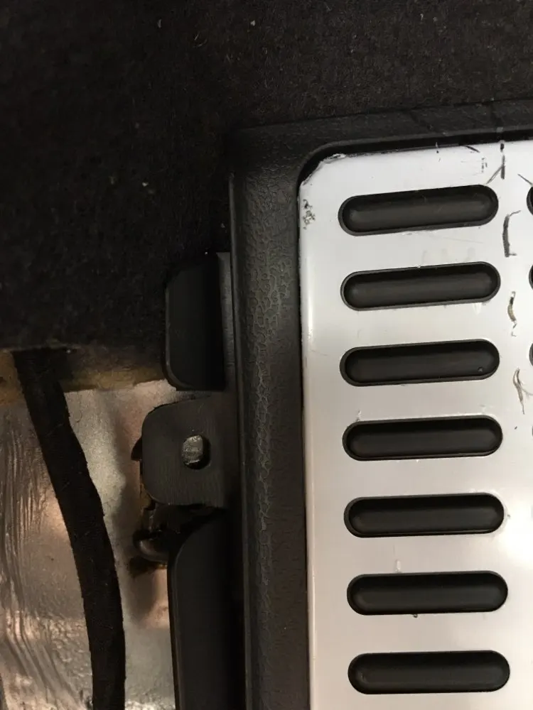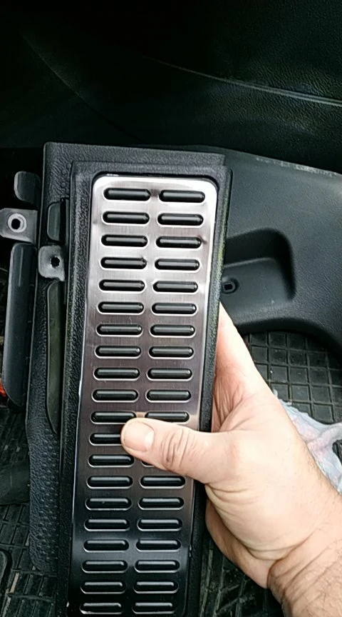 Накладка на педаль тормоза установилась нормально, чего нельзя сказать про педаль газа... Размер металлической пластины на пару миллиметров меньше по высоте, что очень плохо сказывается на установке! Пришлось немного разгибать края накладки и подпиливать пластик на педали(