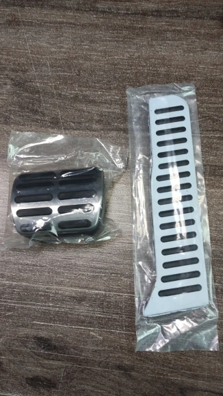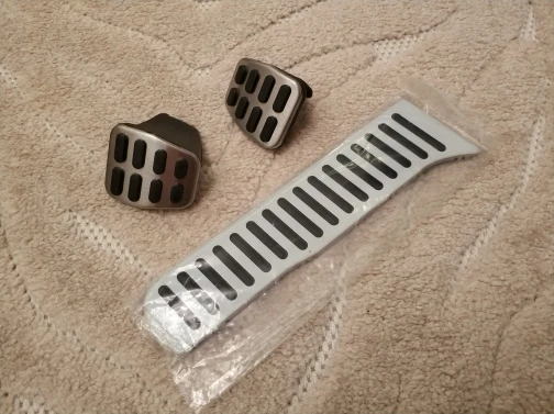 были такие же от другого продавца, поэтому опишу в сравнении. этим 4 звезды за то, что черная накладка на педали газа слишком толстая, и поэтому не хватает глубины металлической части, чтоб загнуть усики. пришлось сточить на ленточной шлифмашине. если бы не машинка, точить пришлось бы пол дня. с другой стороны хорошо, что черная часть это пластик, резину бы так не сточил. педаль тормоза все в порядке, и там резина на черных полосках. доставка быстрая
