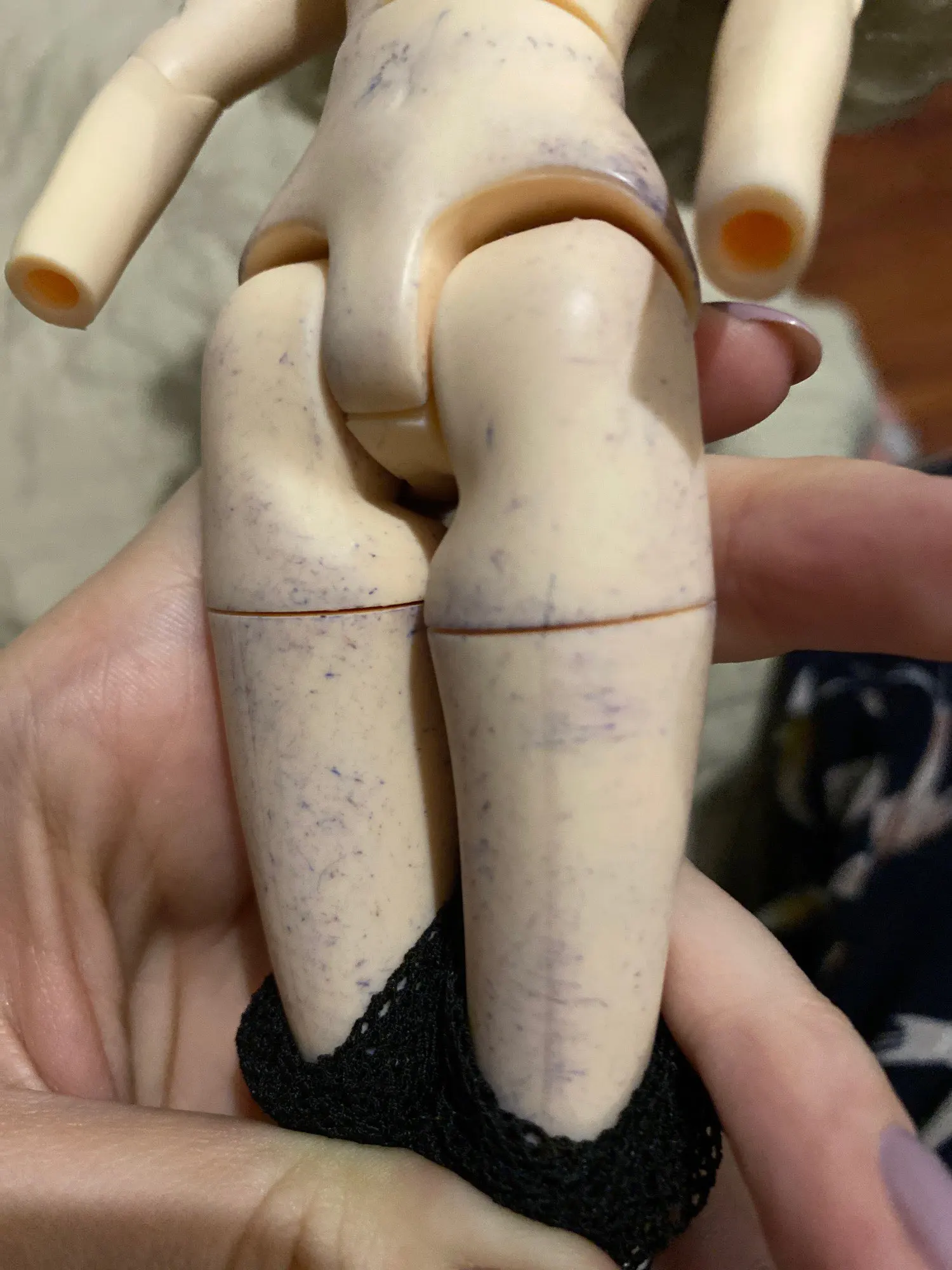 УЖАС!! Люди, осторожно!. Не советую это покупать , я надела на барби 90-х эти сухие (!) горе-колготки, НОГИ ИСПОРЧЕНЫ! Ничем не смываются синие разводы, кукла ценная испорчена. Едкая химия на данном изделии в качестве красителя. Не покупайте, если вам дорога ваша кукла. Швы ужасные, да и еле натягиваются на куклу. Отвратительный товар.
