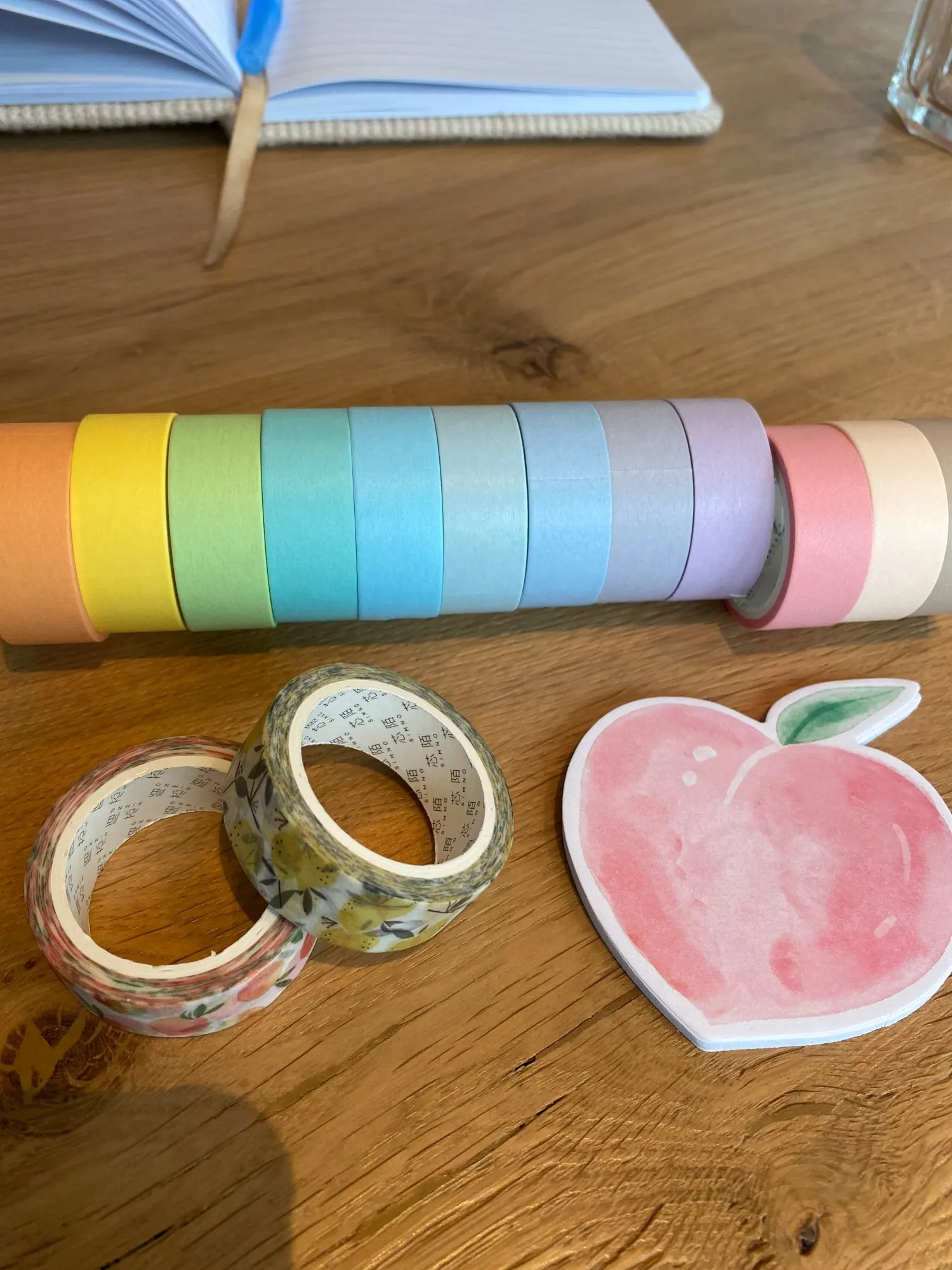 Довольны этими стойками! Как вы можете видеть на второй картинке, я выбрал персиковую и лимонную ленту, потому что на рулоне есть больше ленты. 12 цветов, которые я купил, это другая история. Это не так много на ролях, но я в любом случае их люблю!