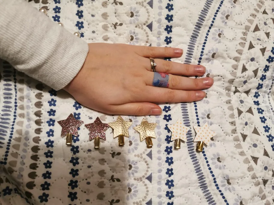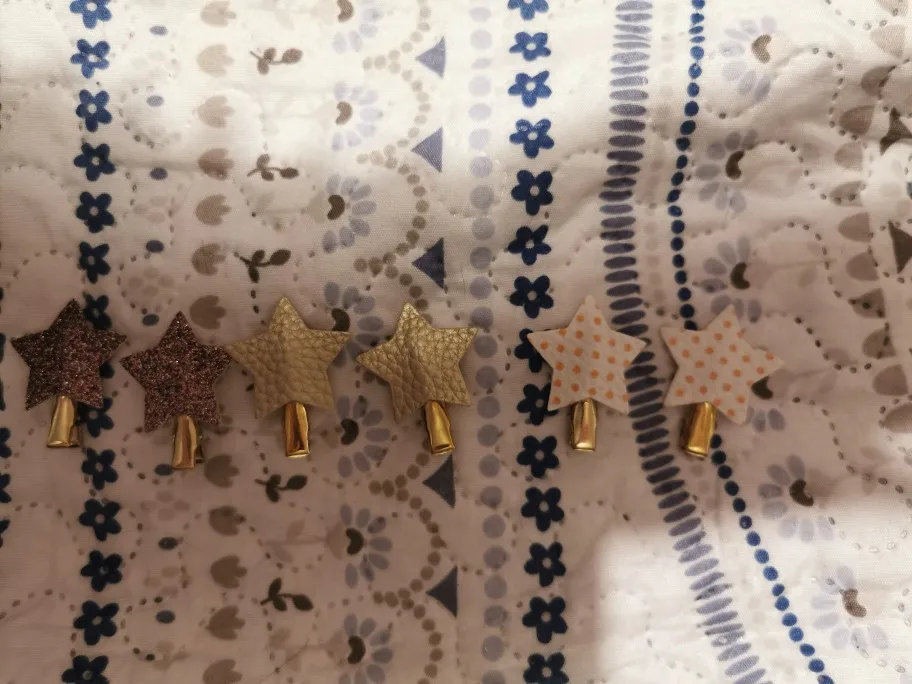 Аккуратные красивые заколочки, продавец в подарок положил ещё две невидимки. Доставка, с учетом новогодних праздников, быстрая.