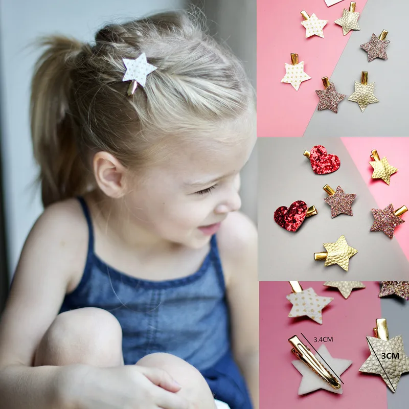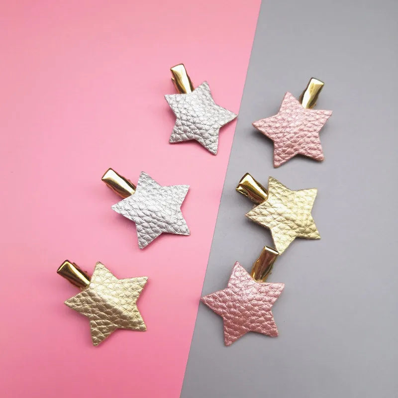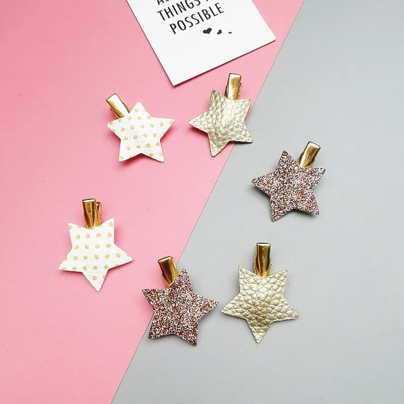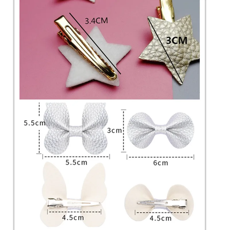 610 шт.компл. заколки для волос из искусственной кожи со звездами и бабочками для девочек, детские аксессуары для волос
