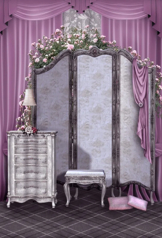 Фон для фотографий Laeacco, с изображением будуара, занавеса, цвето...