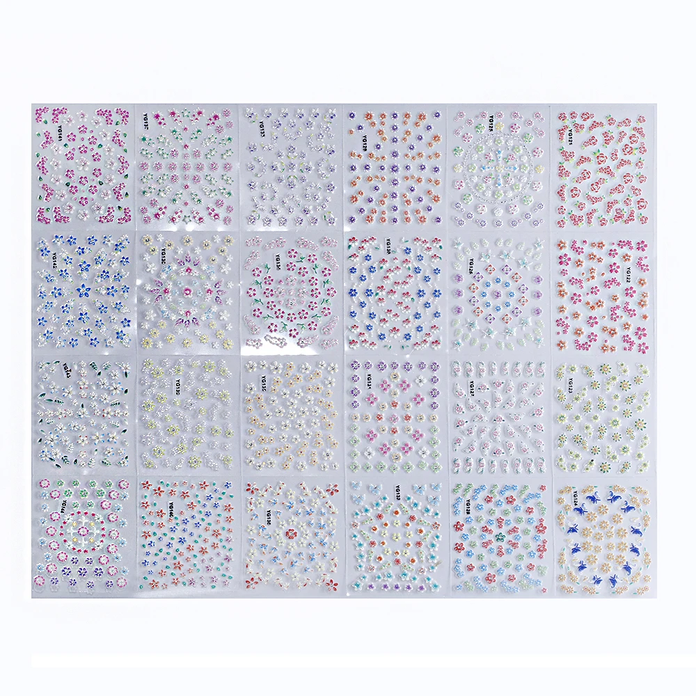 24 листапартия наклейки для ногтей 24 дизайна цветок розыузор бабочки 3D наклейки для ногтей Переводные картинки для ногтей NTL-17 #