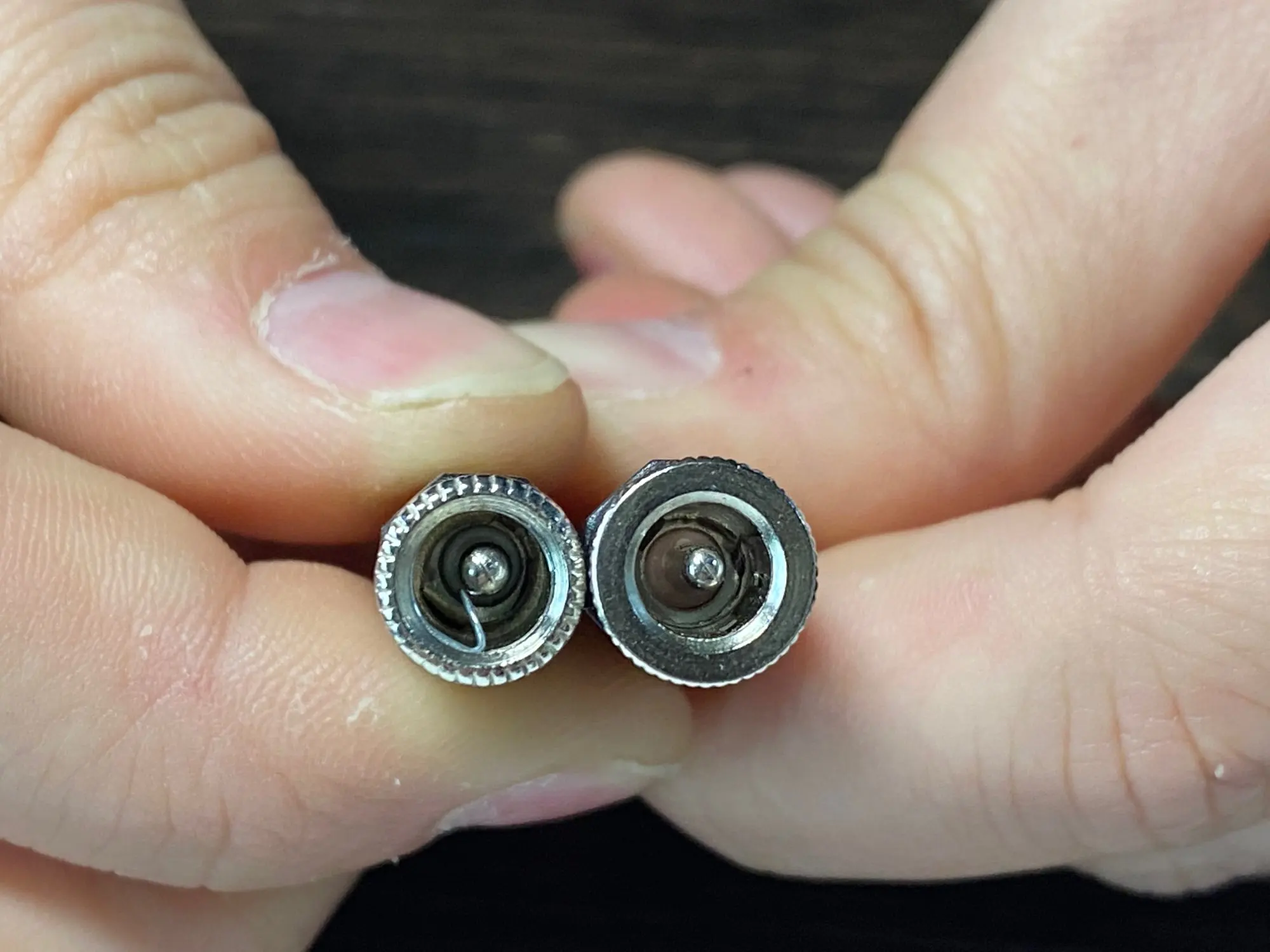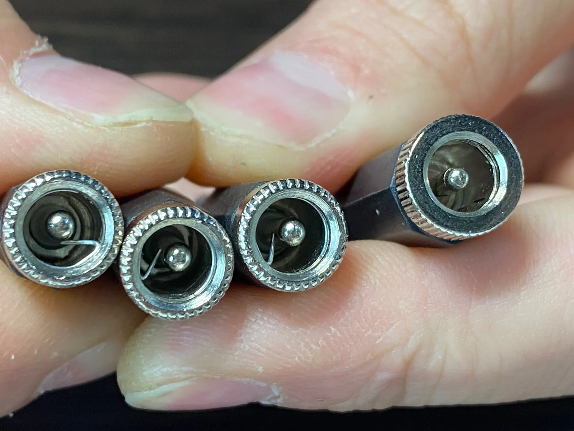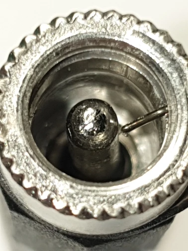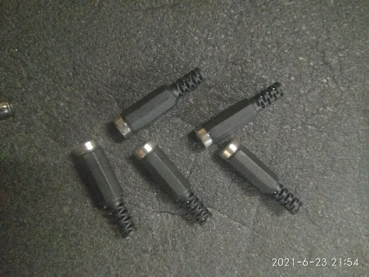Странная конструкция. Центральный штырёк цельный (не полый), это хорошо. Минус дублирует тоненькая проволока-пружинка. Посмотрим, на сколько её хватит. Само гнездо констуктивно сделано для коротких штеккеров-пап. На фото видно. Но, за эти деньги грех жаловаться...